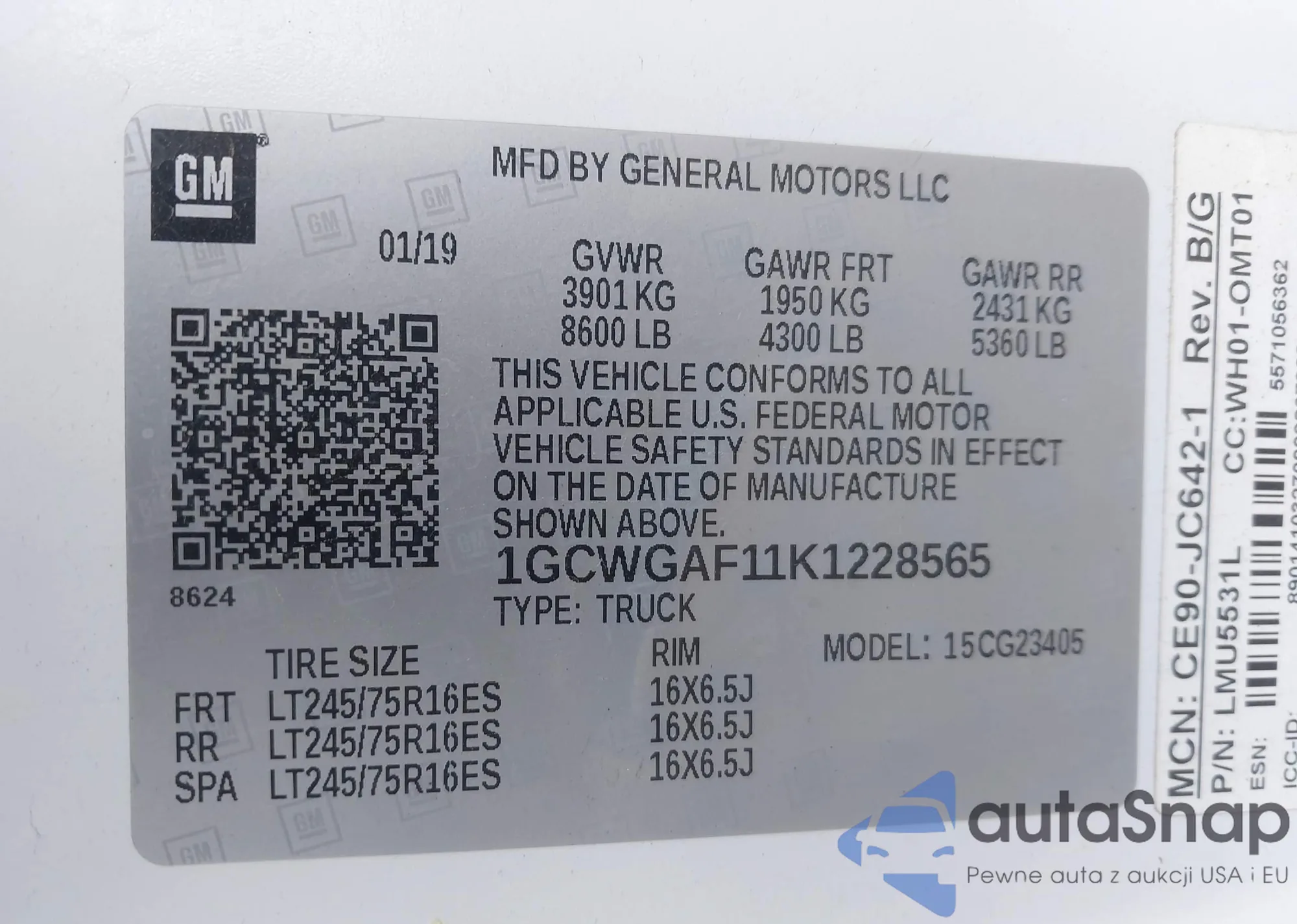 LOT: 43324069 VIN: 5TDDZRFH5KS964702