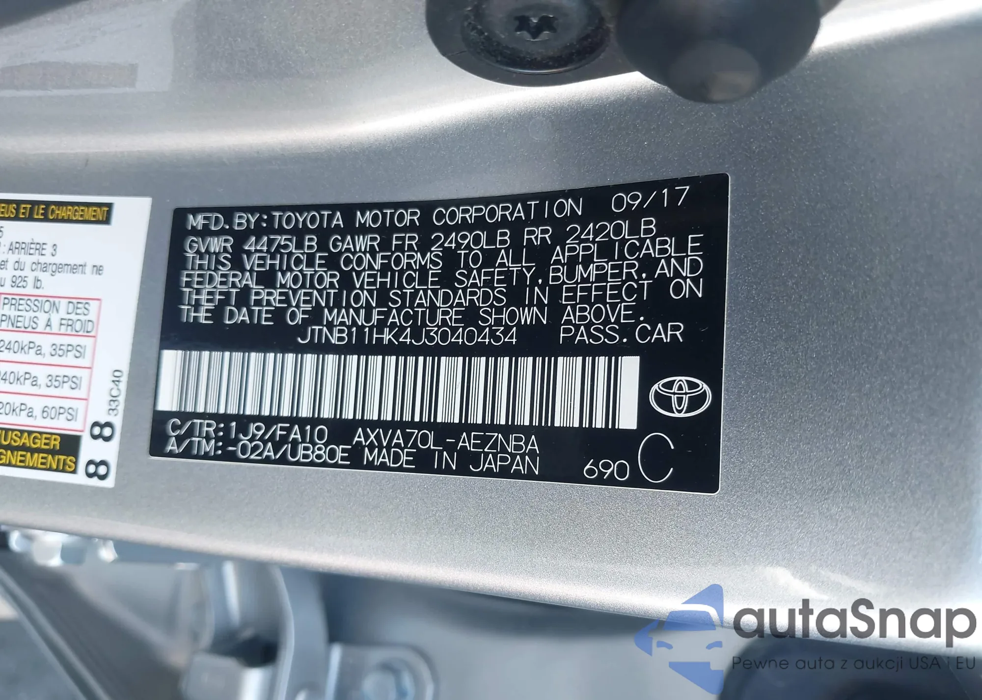 LOT: 43559818 VIN: JTNB11HK4J3040434