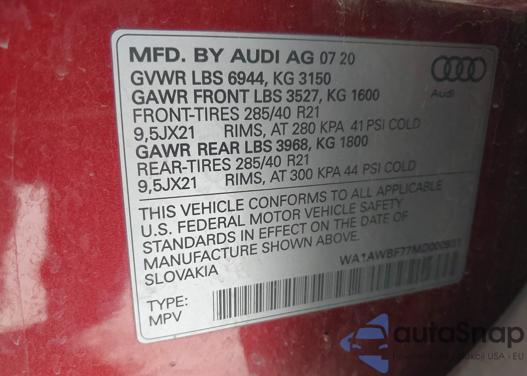 • VIN WAUCFAFR4FA022249
