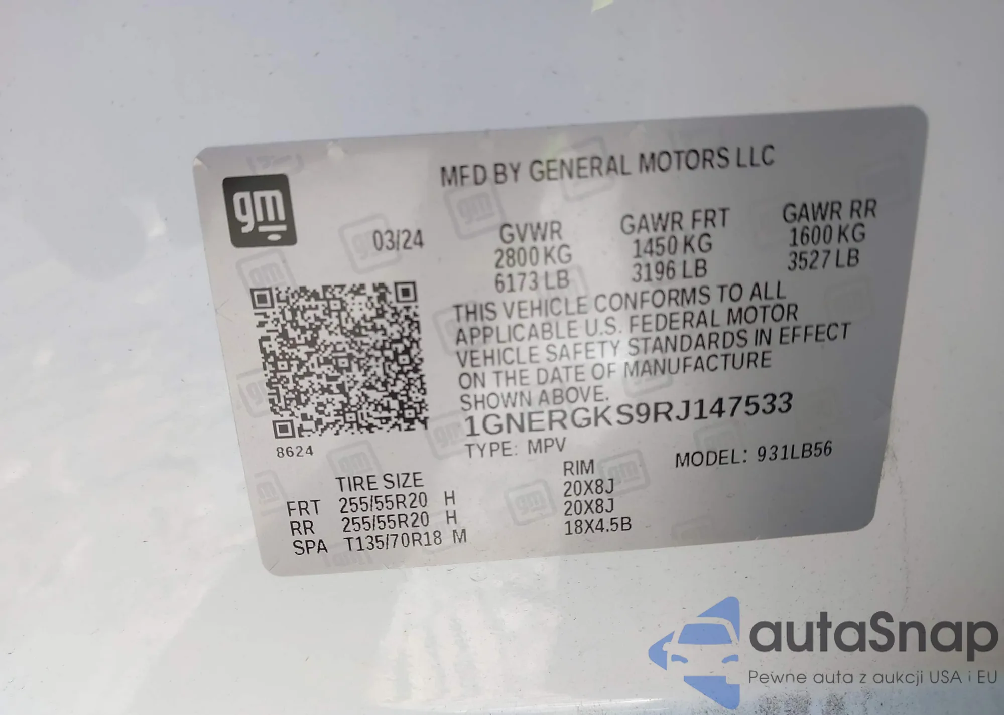 LOT: 43804640 VIN: 1GNERGKS9RJ147533