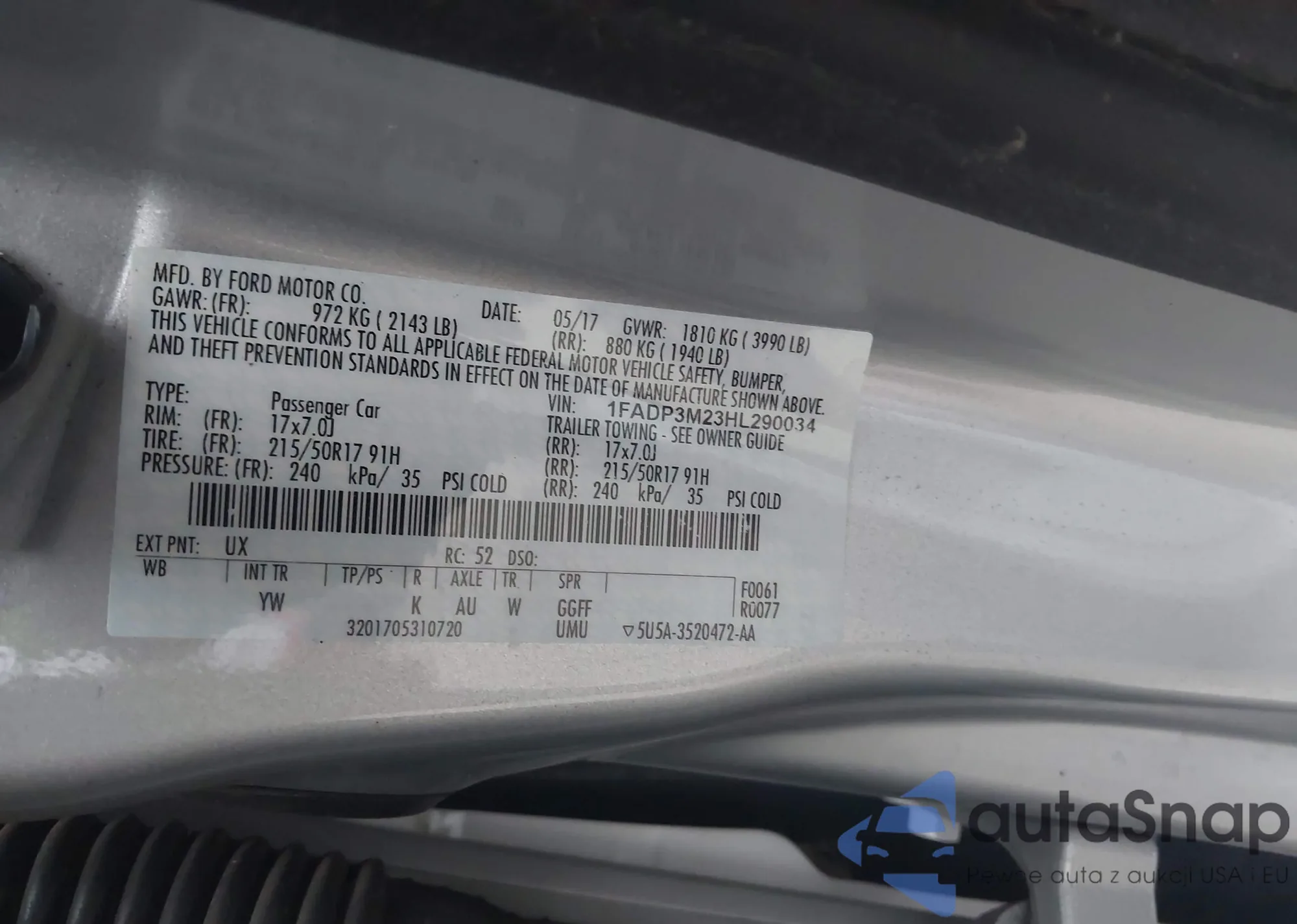 • VIN 1FADP3M23HL290034