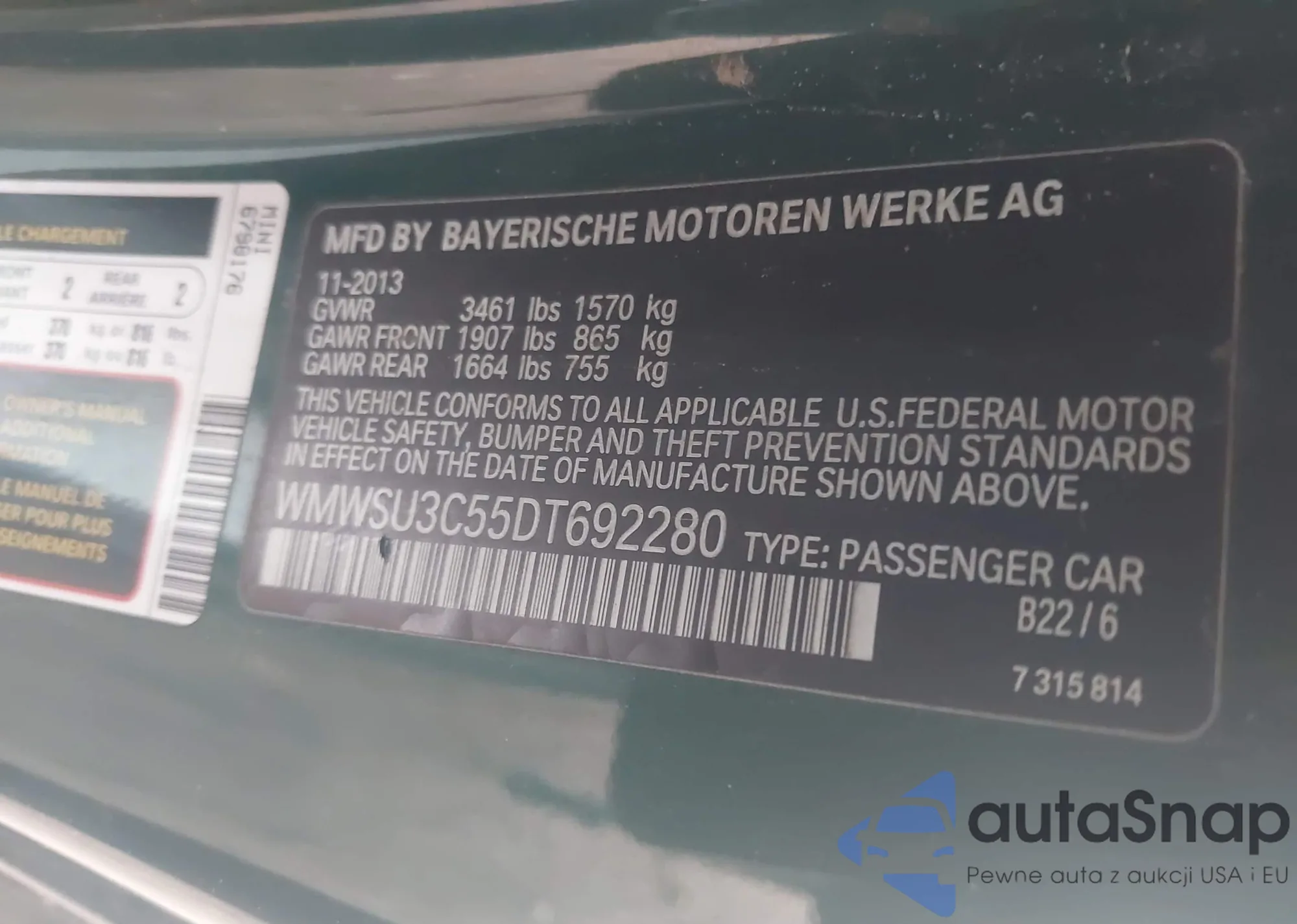 LOT: 43517157 VIN: WMWSU3C55DT692280