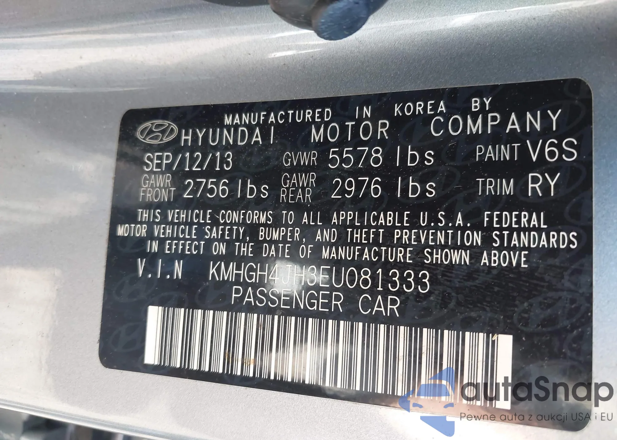 • VIN KMHGH4JH3EU081333