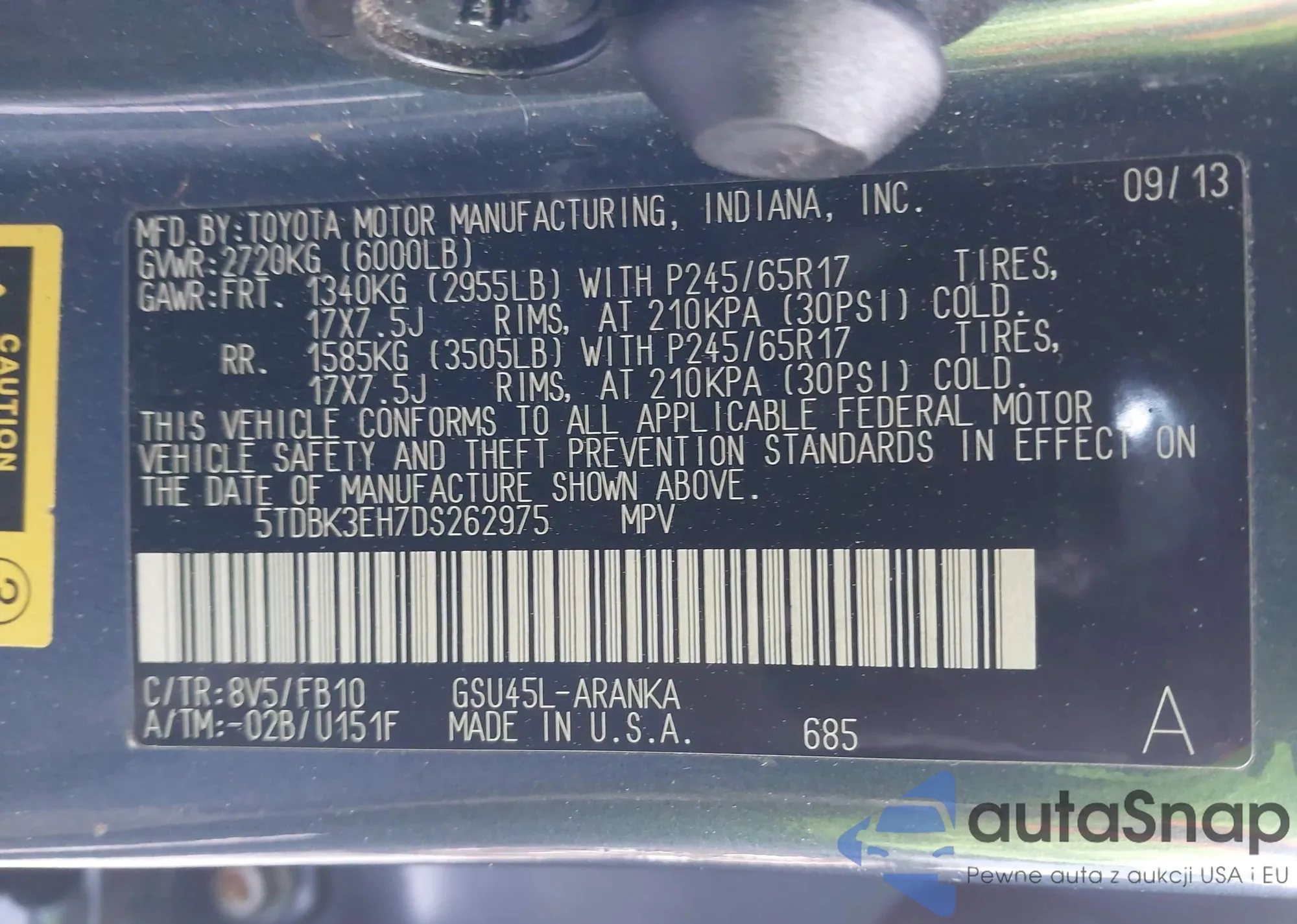 • VIN 5TDBK3EH7DS262975