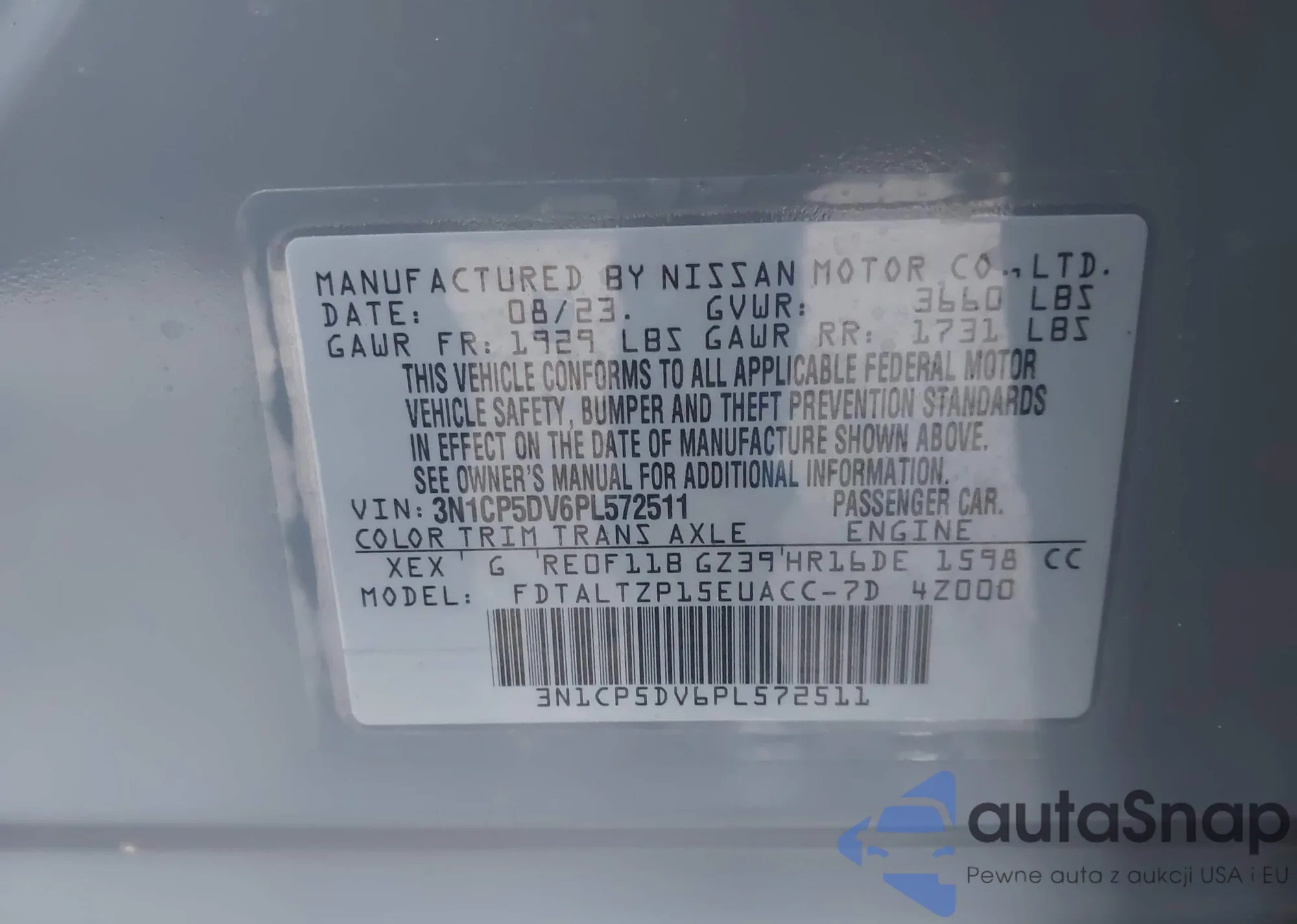 • VIN 3N1CP5DV6PL572511