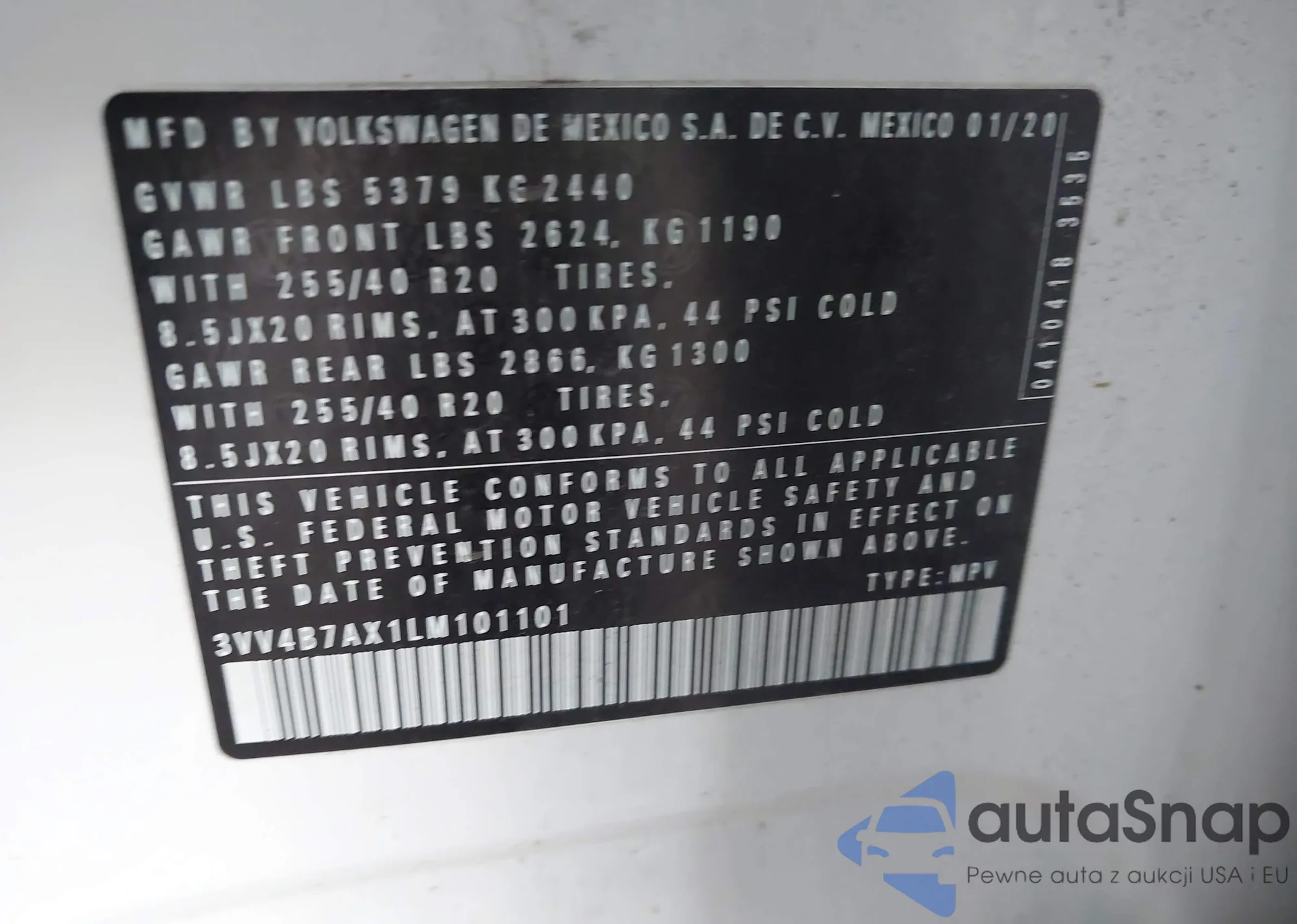 • VIN 3VV4B7AX1LM101101