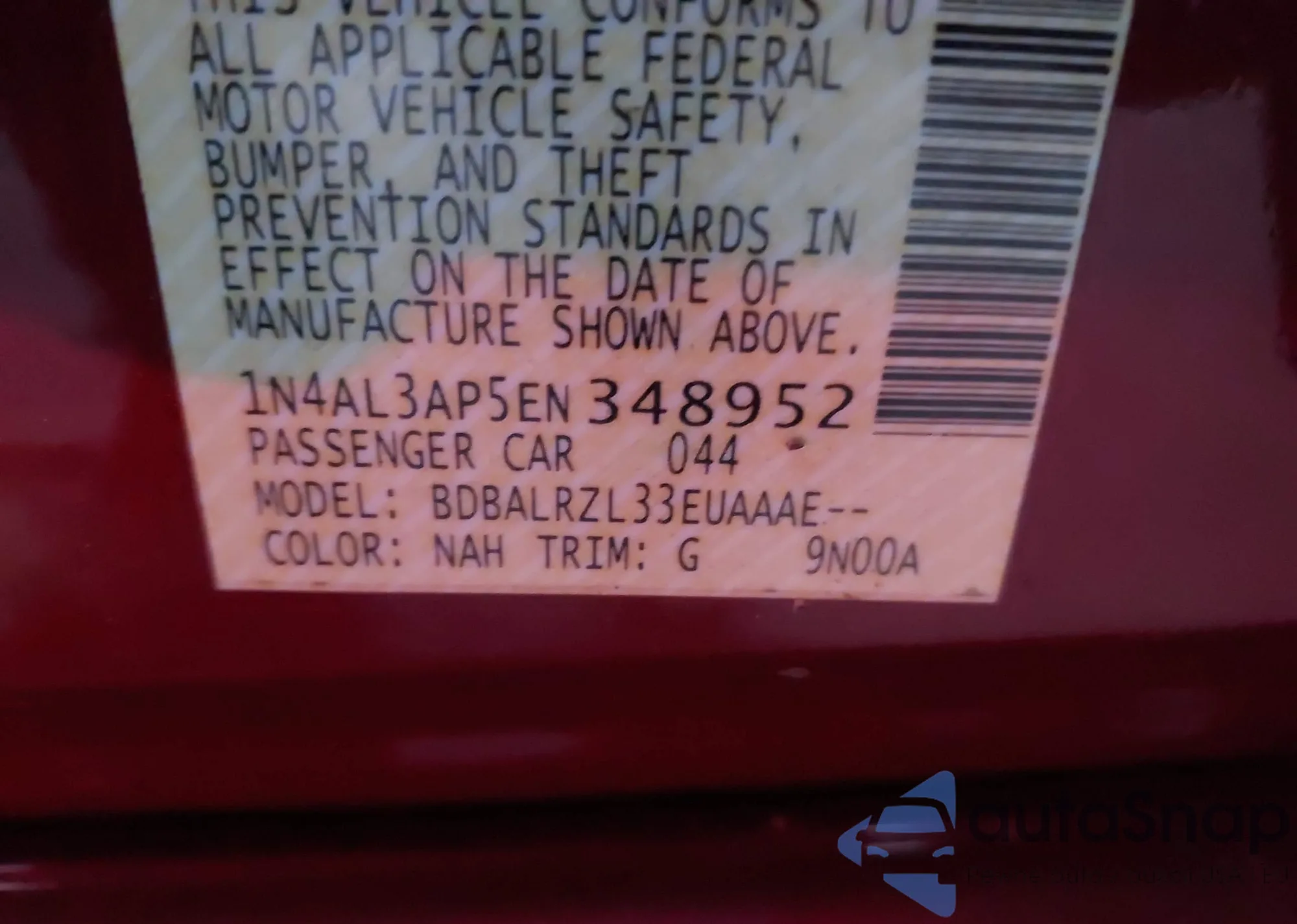 LOT: 43878194 VIN: 1N4AL3AP5EN348952