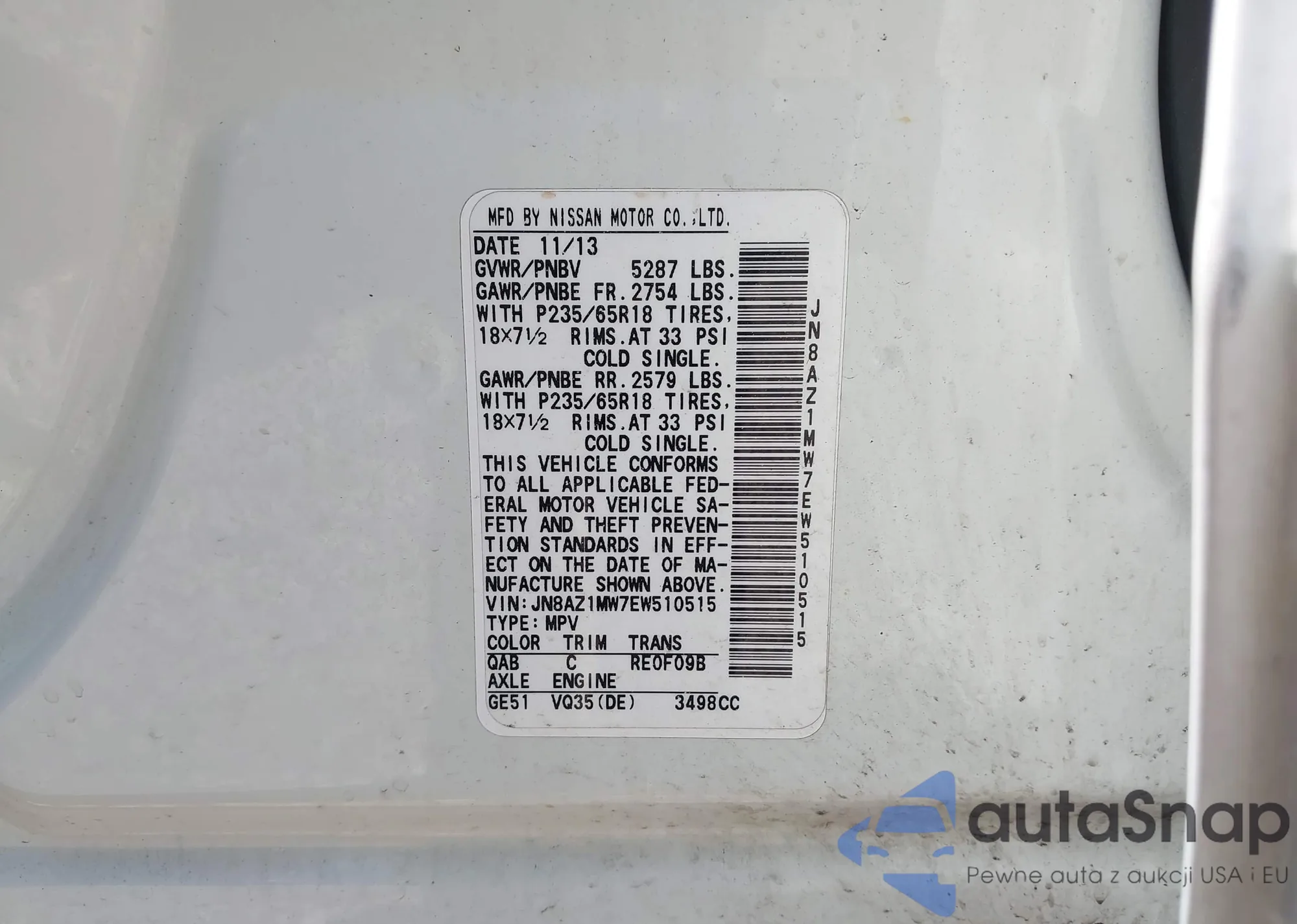 • VIN WBABN53403PH04586