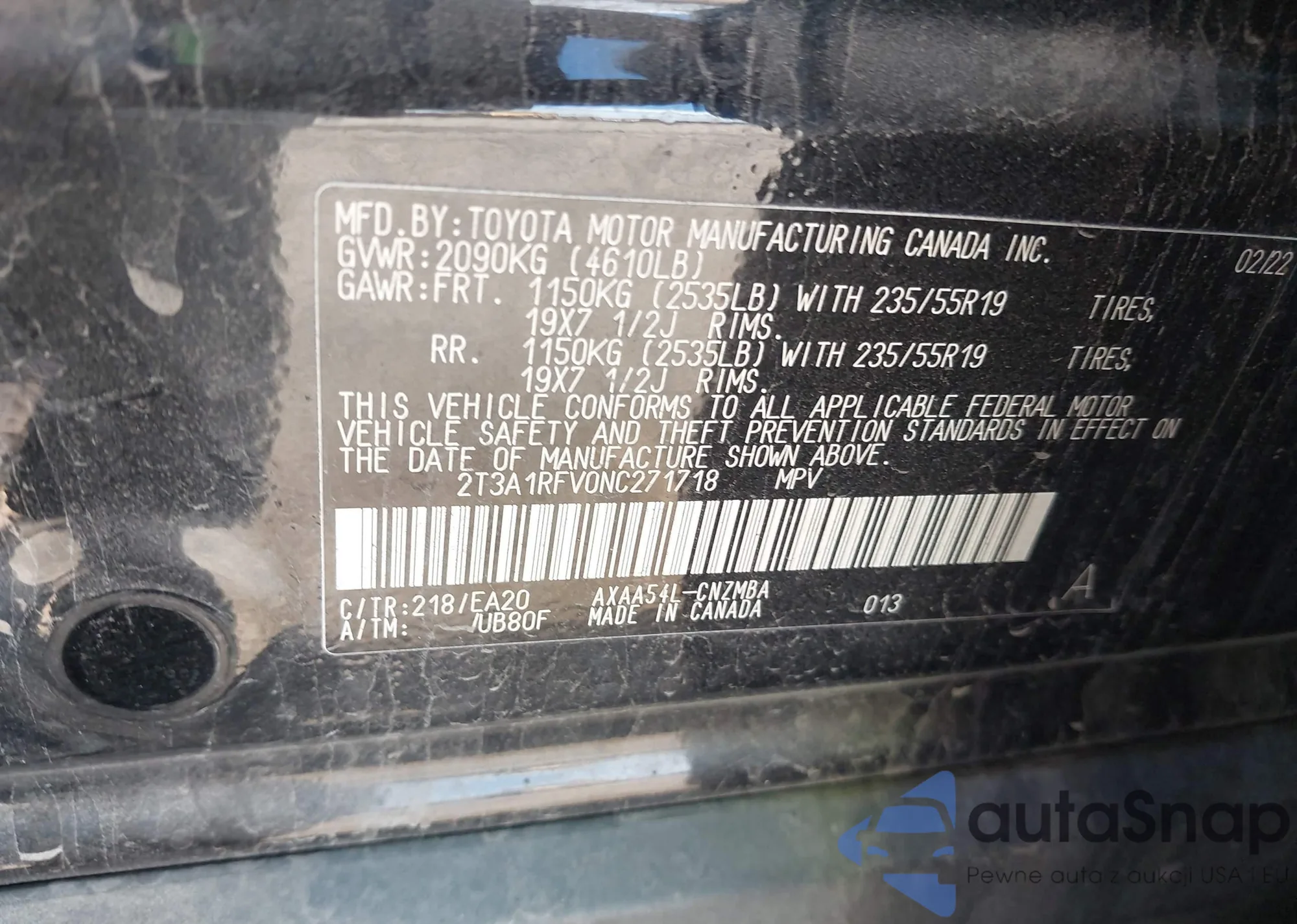 • VIN 2T3A1RFV0NC271718