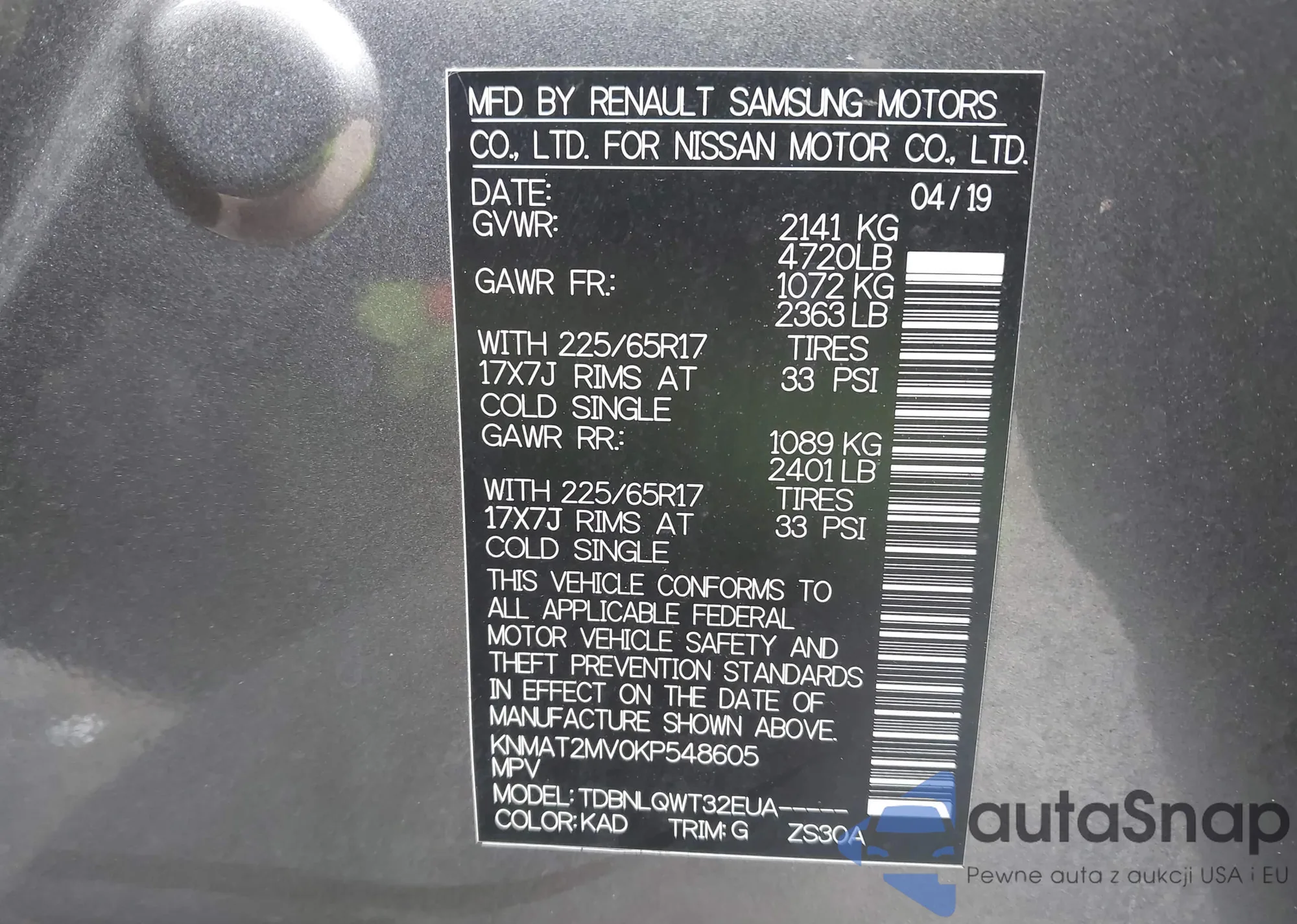 • VIN 3N1AB7AP0KY386868
