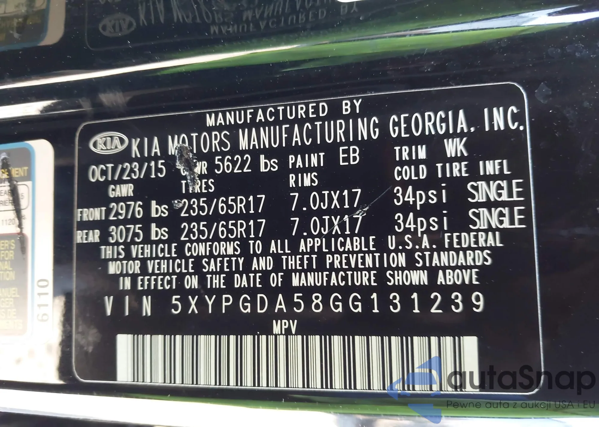 LOT: 43596580 VIN: 5XYPGDA58GG131239