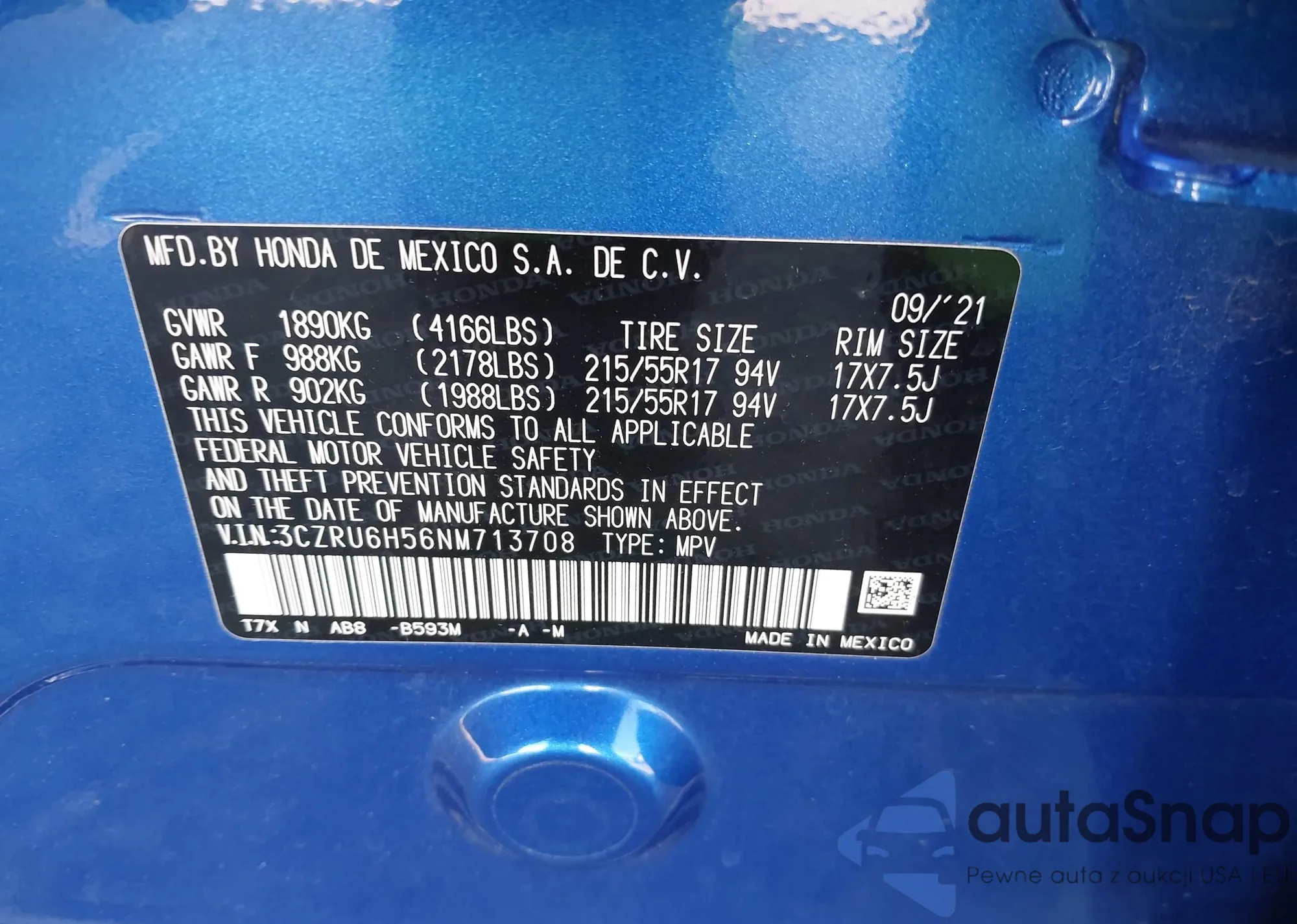 • VIN 3CZRU6H56NM713708
