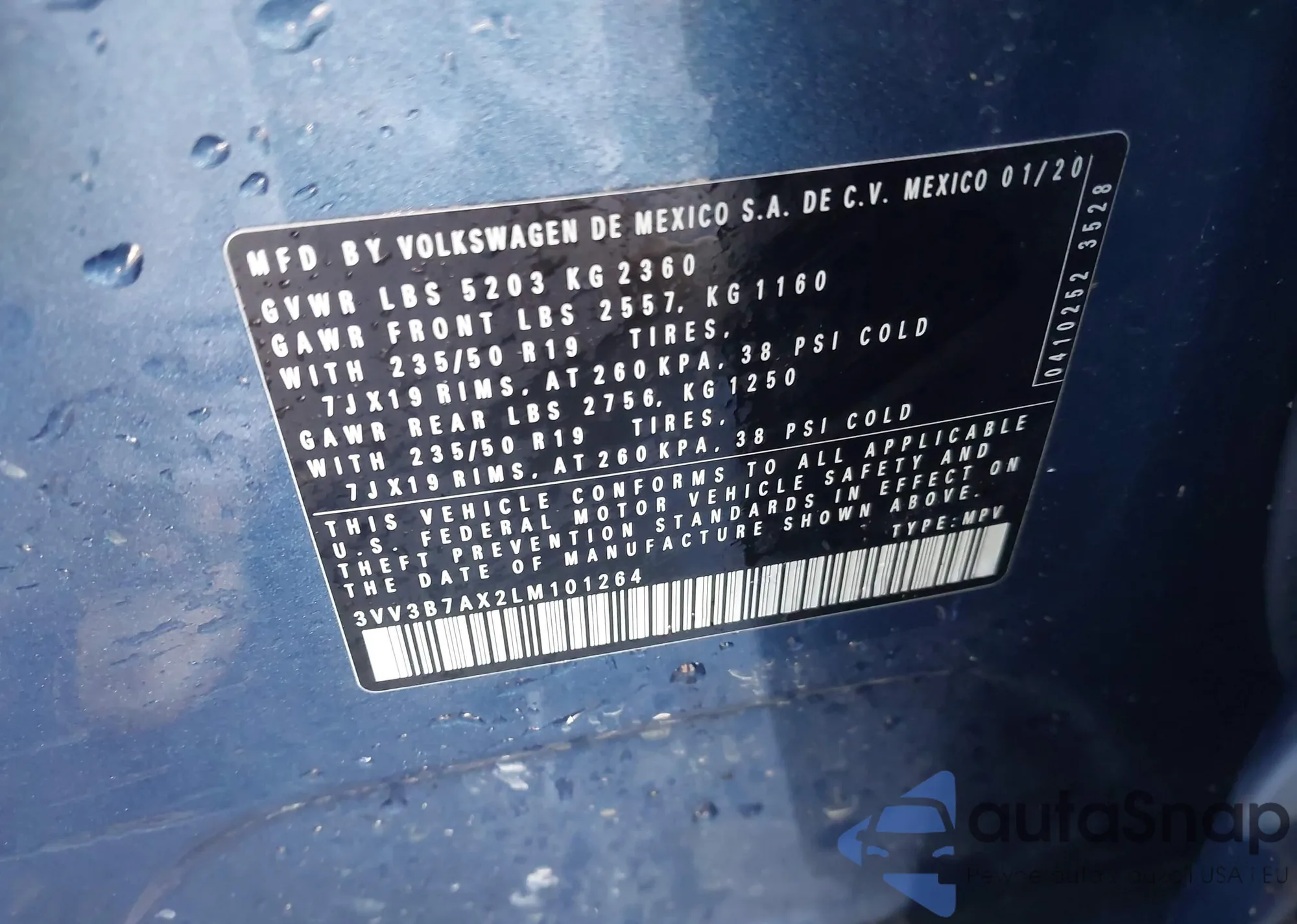 • VIN 3VV3B7AX2LM101264