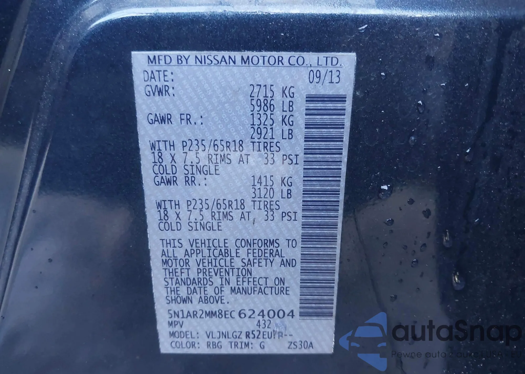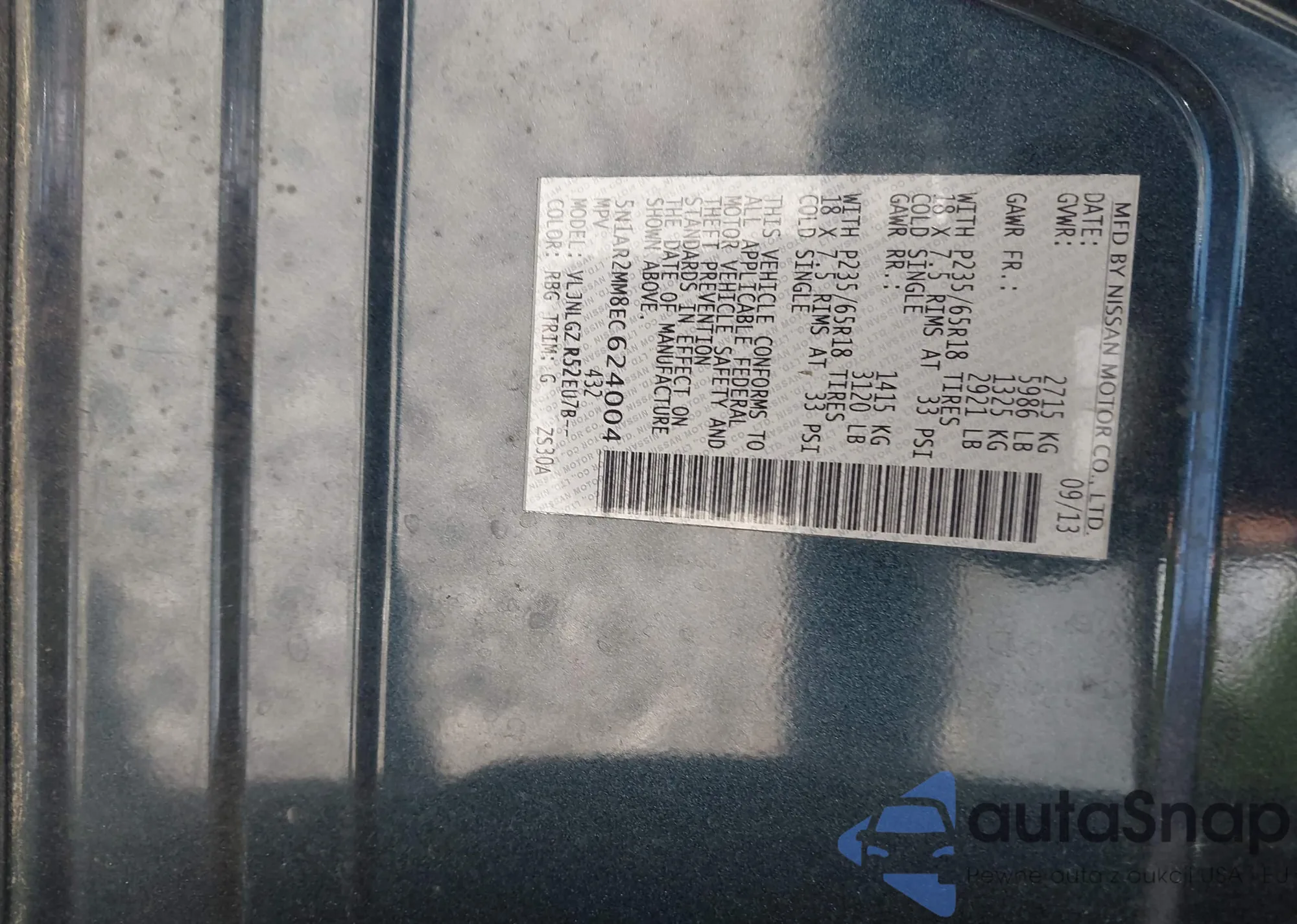 LOT: 43713738 VIN: 5N1AR2MM8EC624004