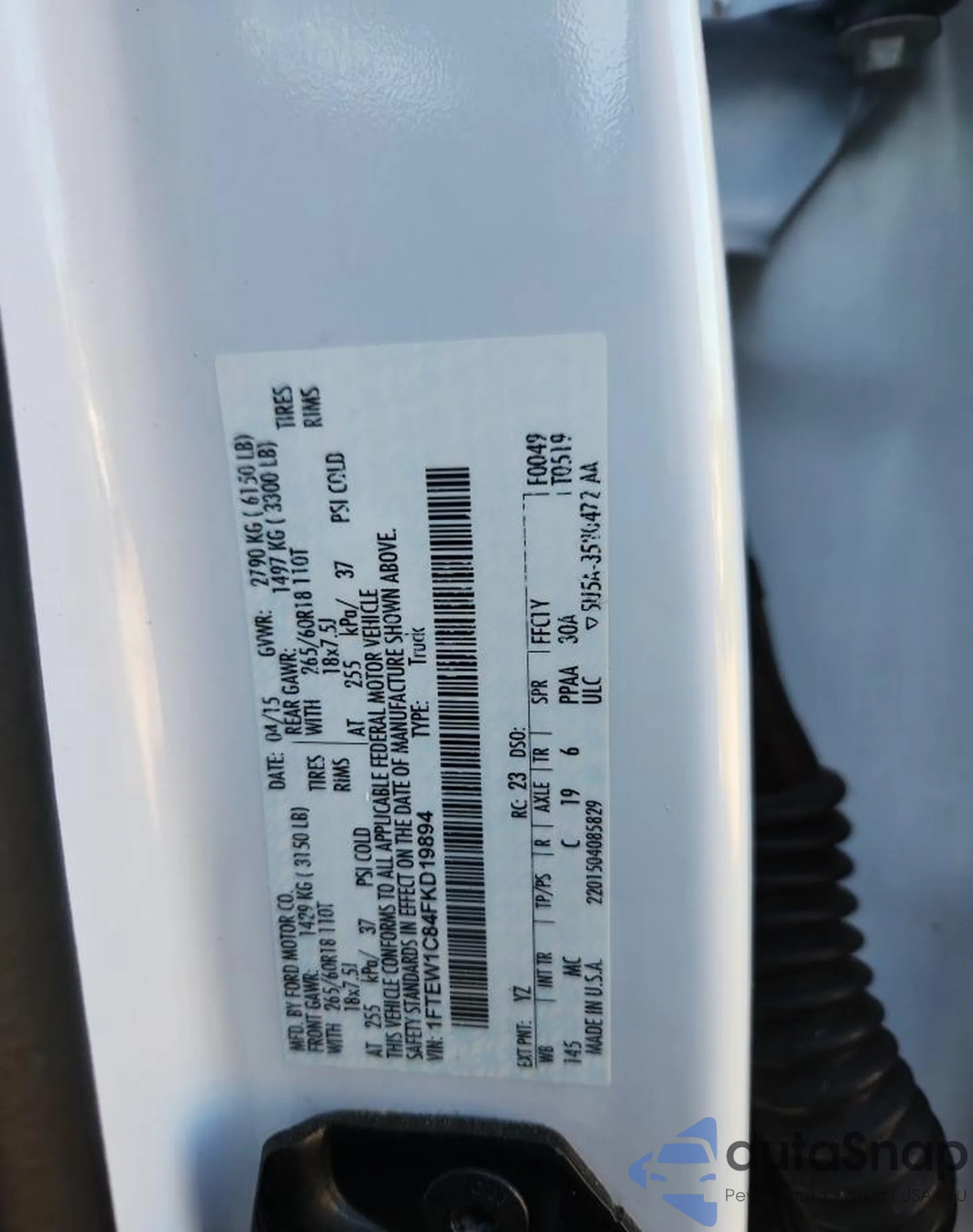 • VIN 1FTEW1C84FKD19894