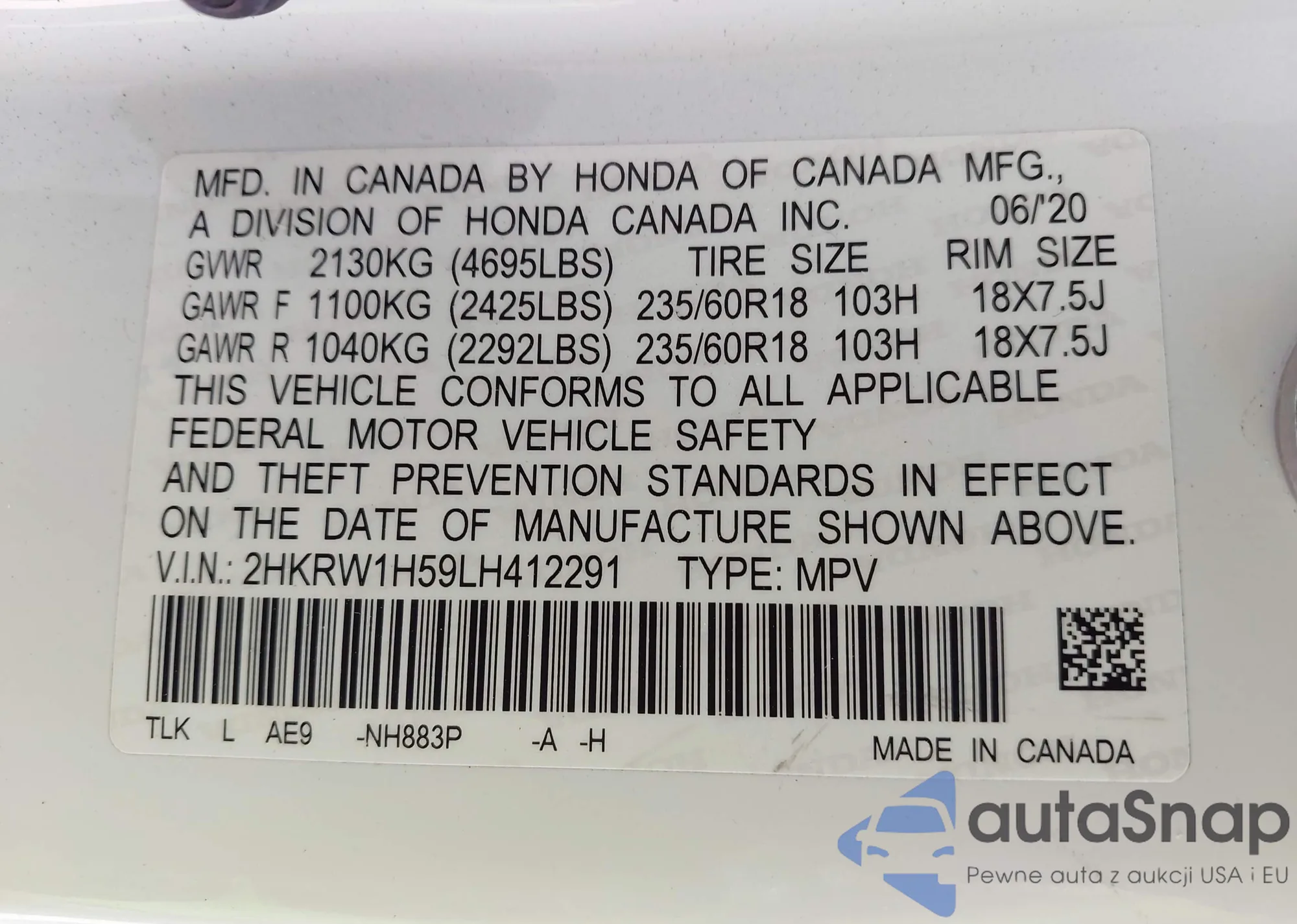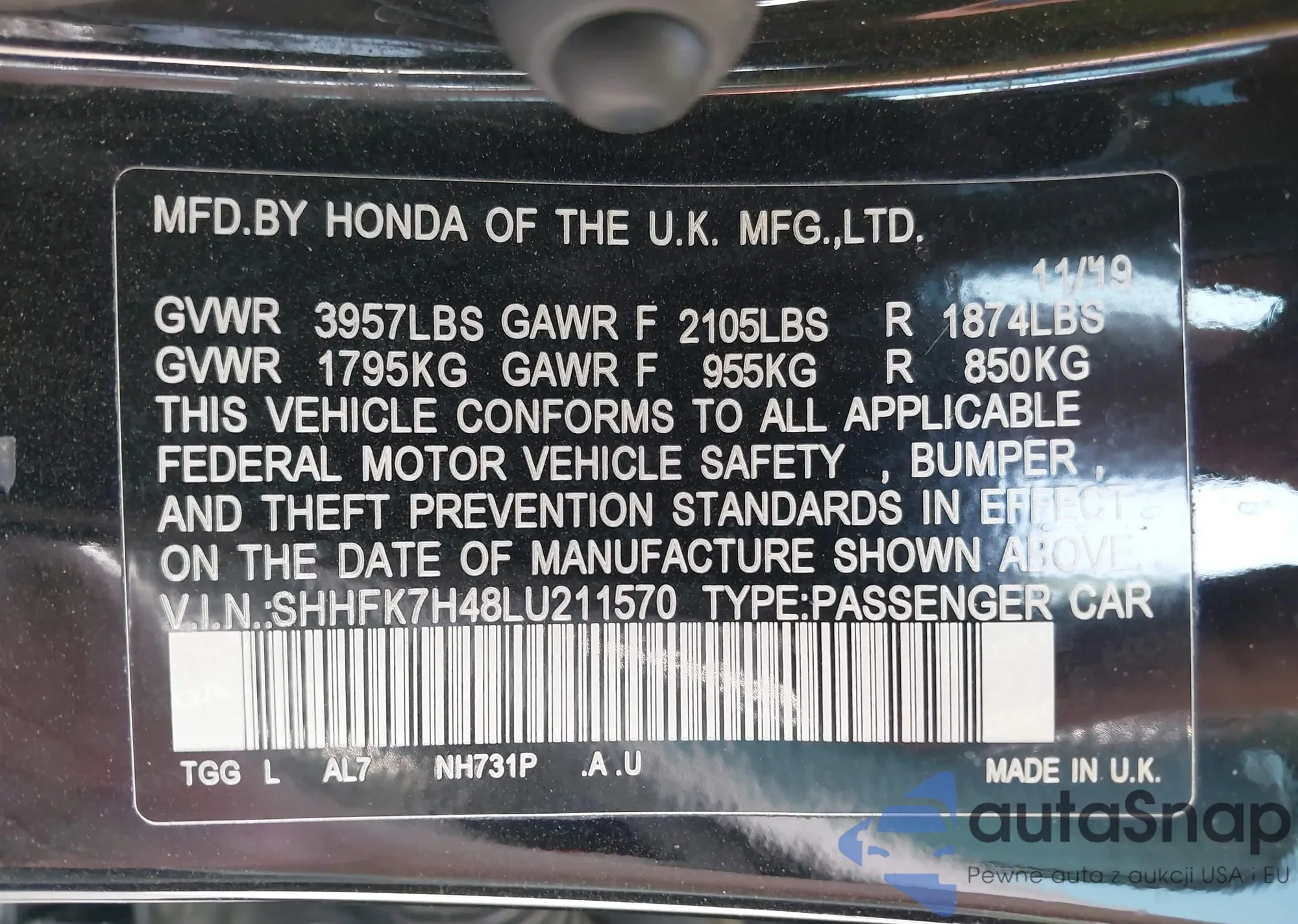 • VIN SHHFK7H48LU211570