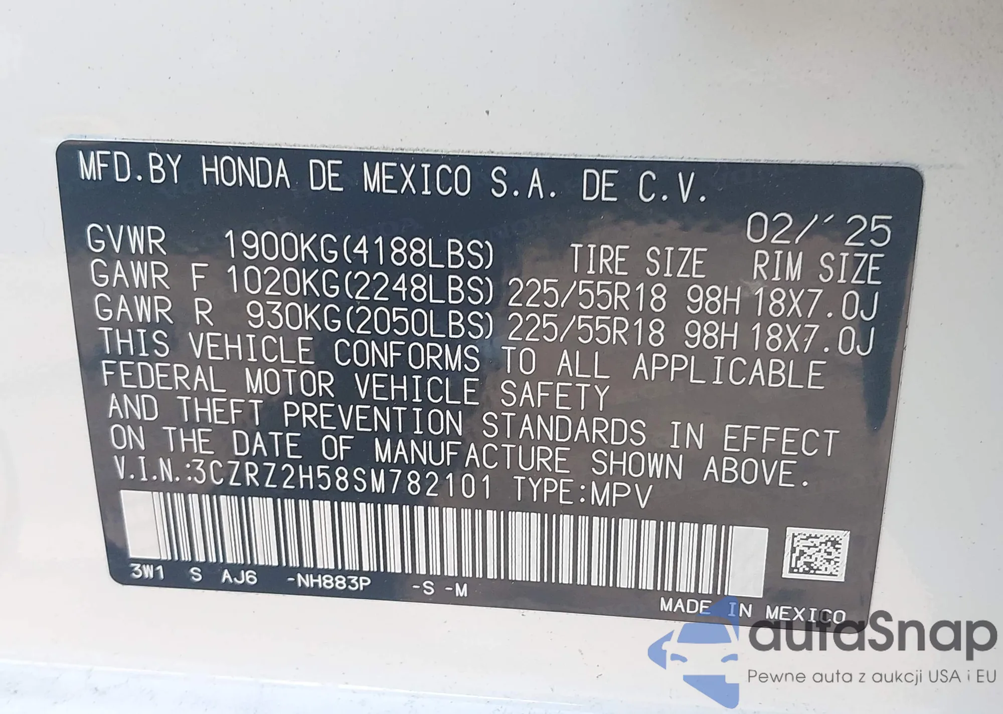 • VIN 3CZRZ2H58SM782101
