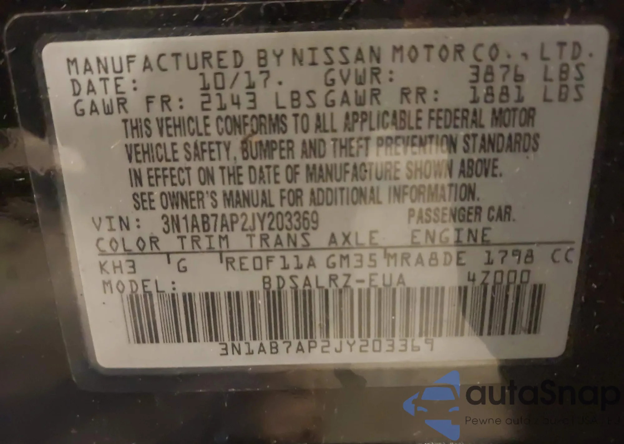 • VIN 3N1AB7AP2JY203369