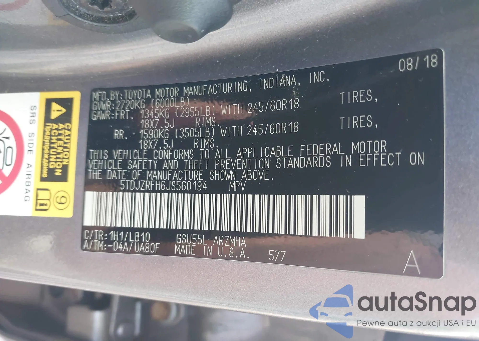 LOT: 43601678 VIN: 2GNAXMEV2J6121057