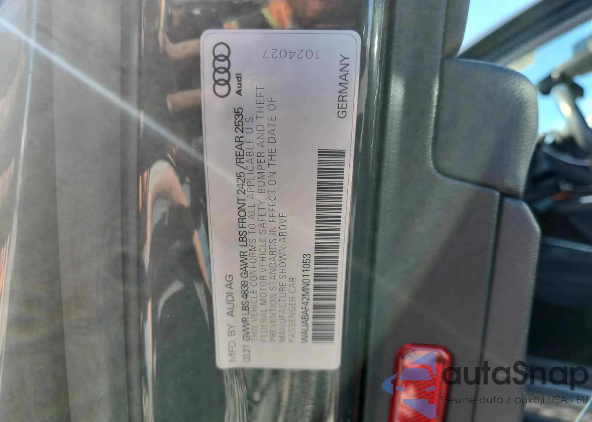 • VIN 1N4BL4EVXKC106166