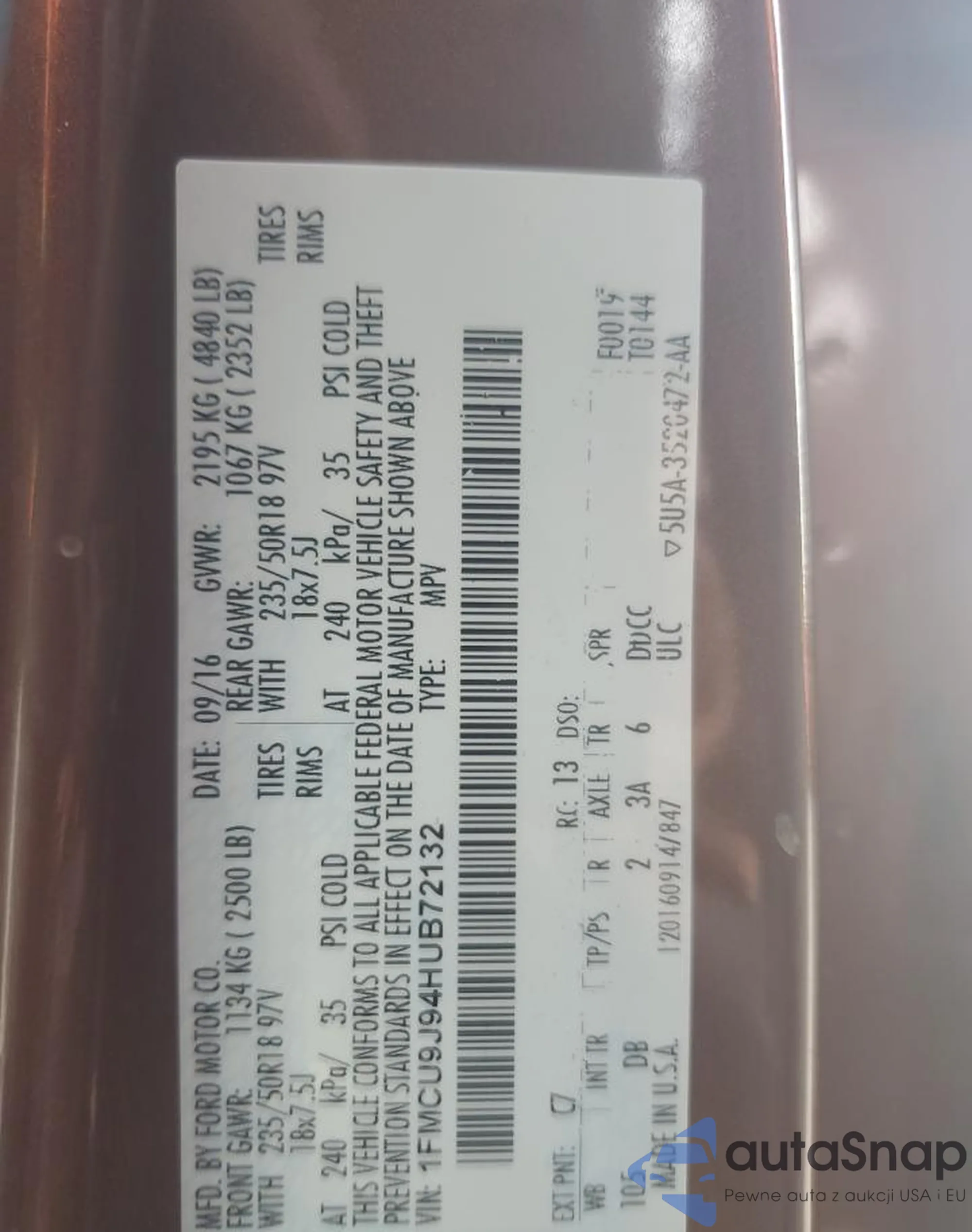 • VIN 1FMCU9J94HUB72132