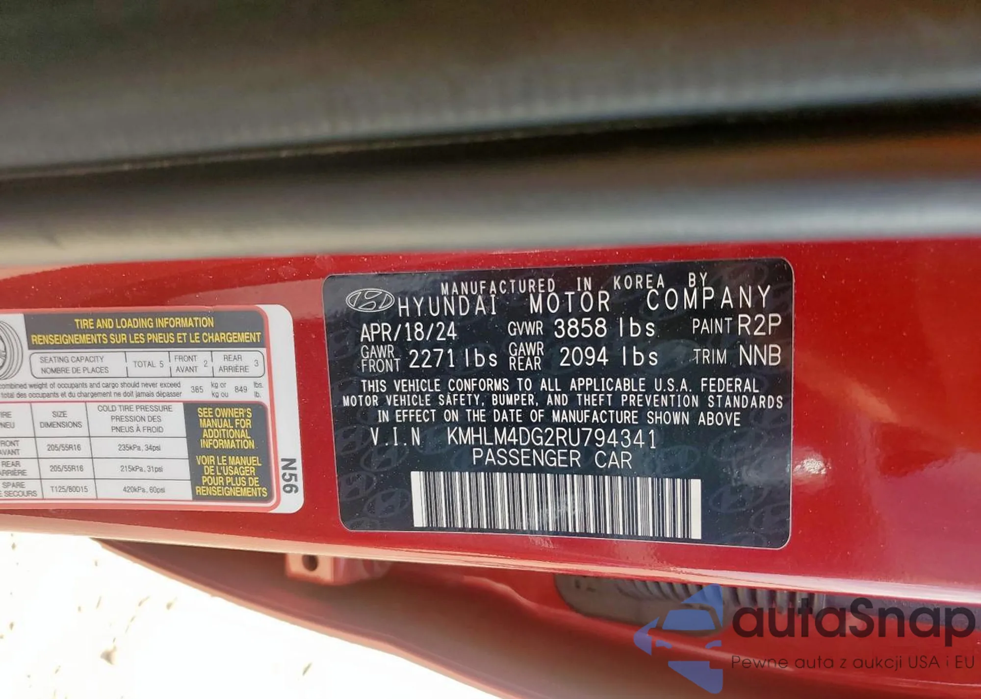 • VIN KMHLM4DG2RU794341
