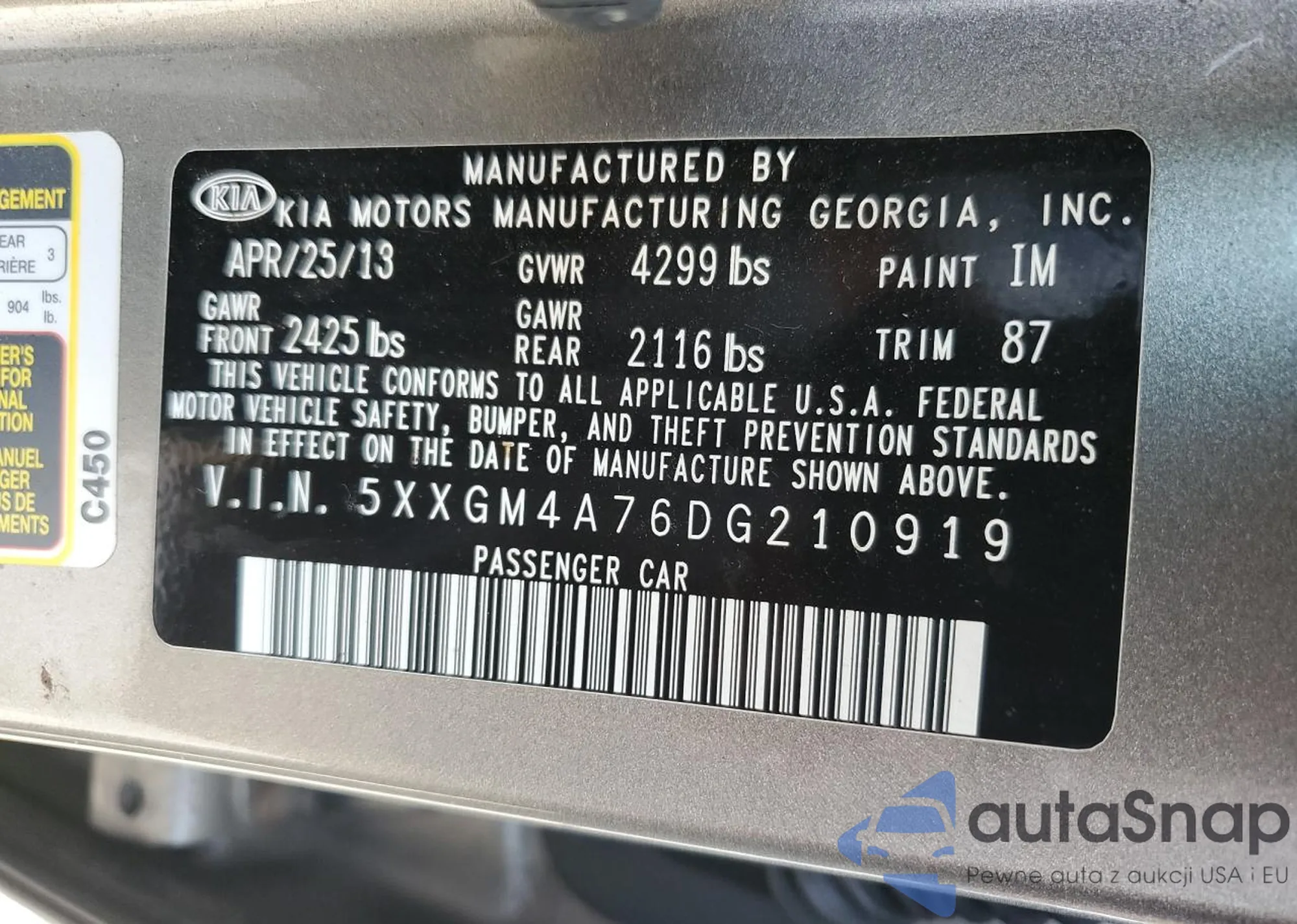• VIN 5XXGM4A76DG210919