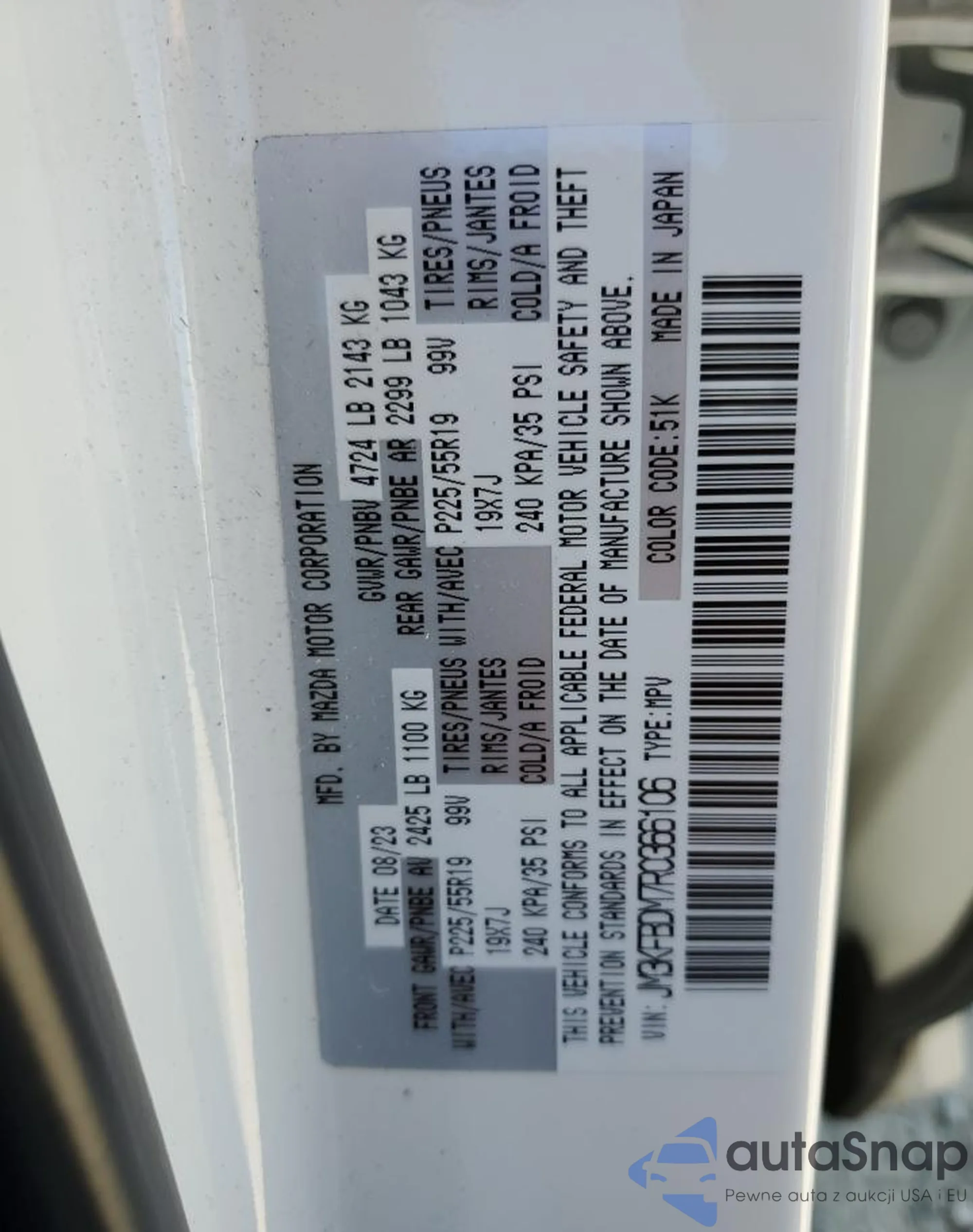 LOT: 80338145 VIN: JM3KFBDM7R0366106