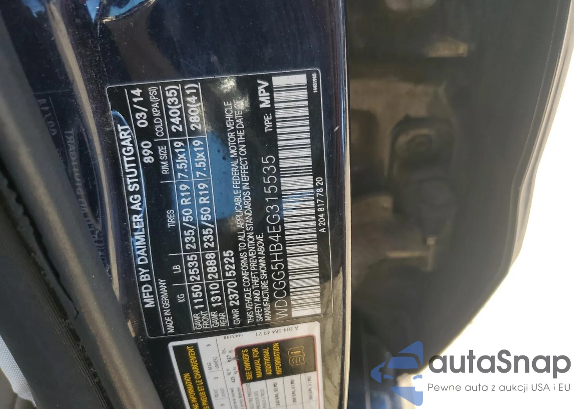 • VIN WDCGG5HB4EG315535