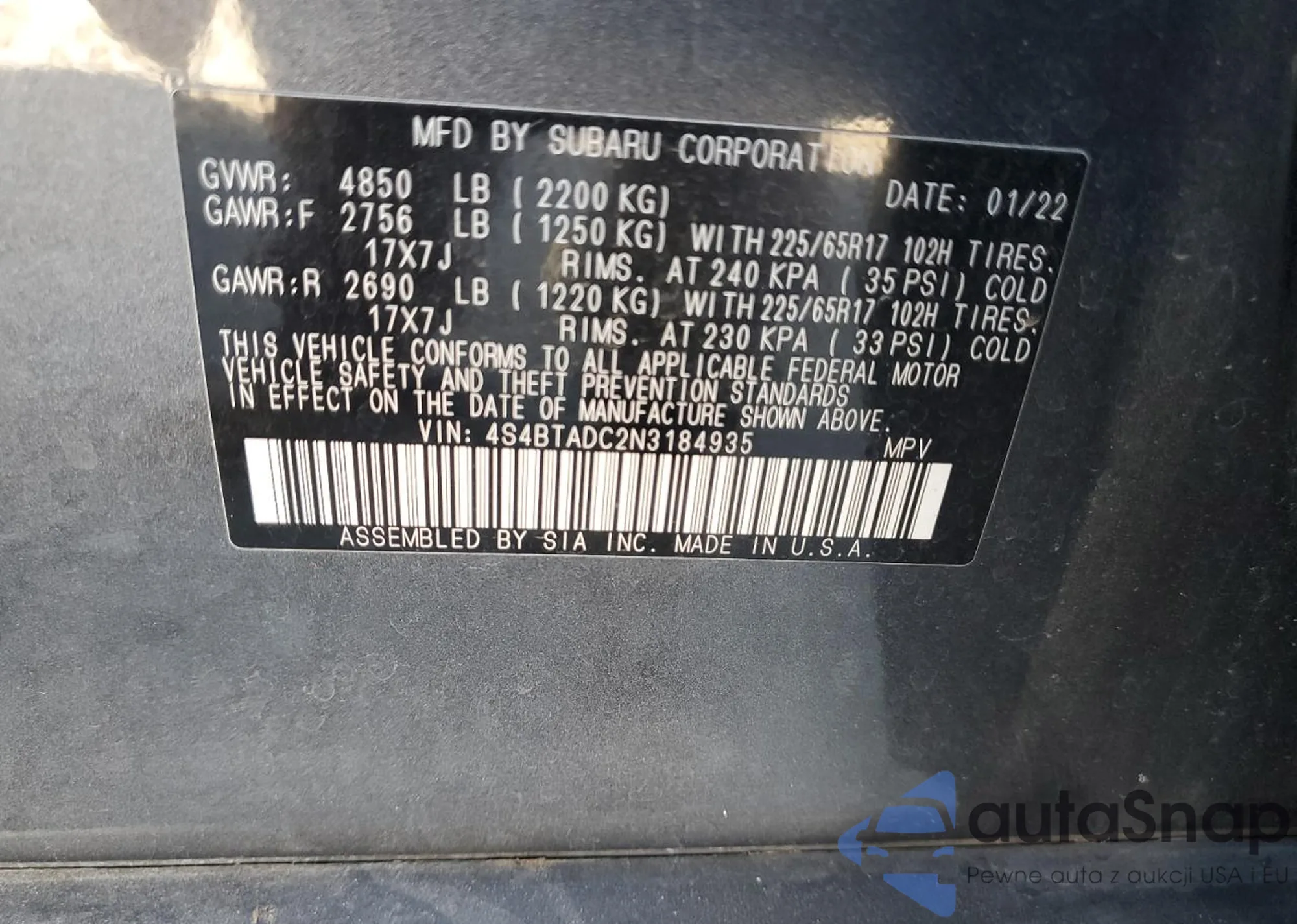 • VIN 4S4BTADC2N3184935