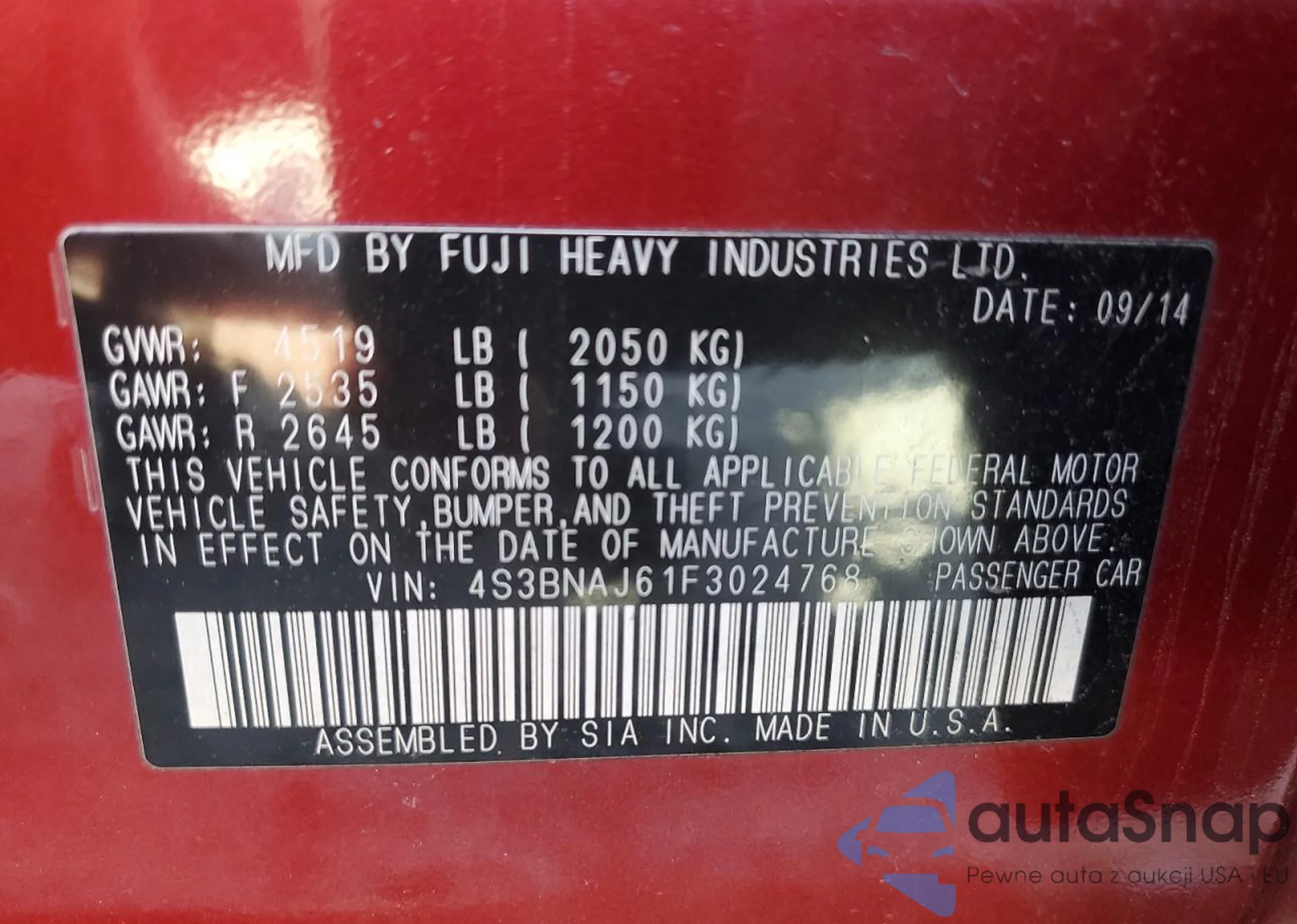 • VIN 4S3BNAJ61F3024768