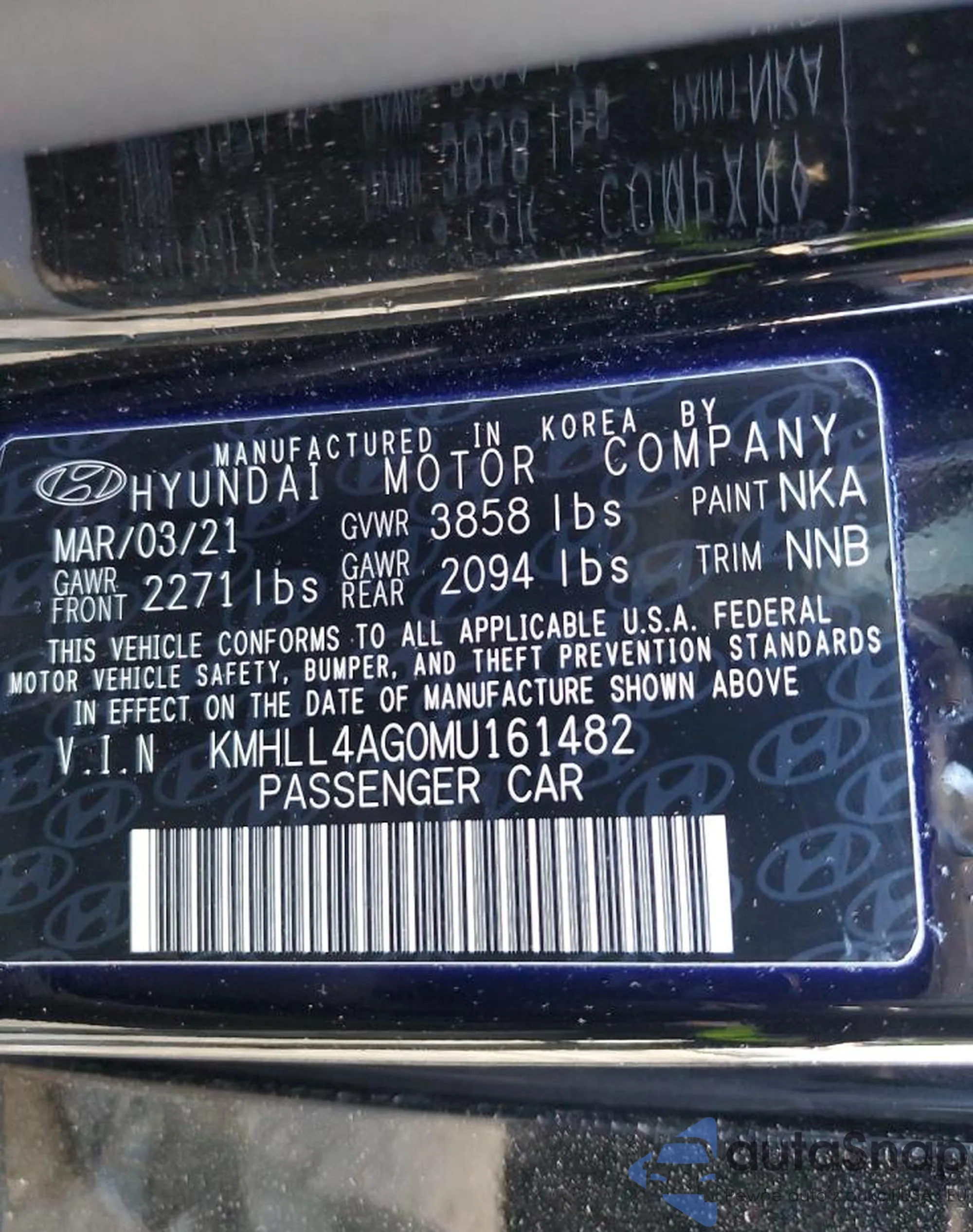 LOT: 85194875 VIN: KMHLL4AG0MU161482