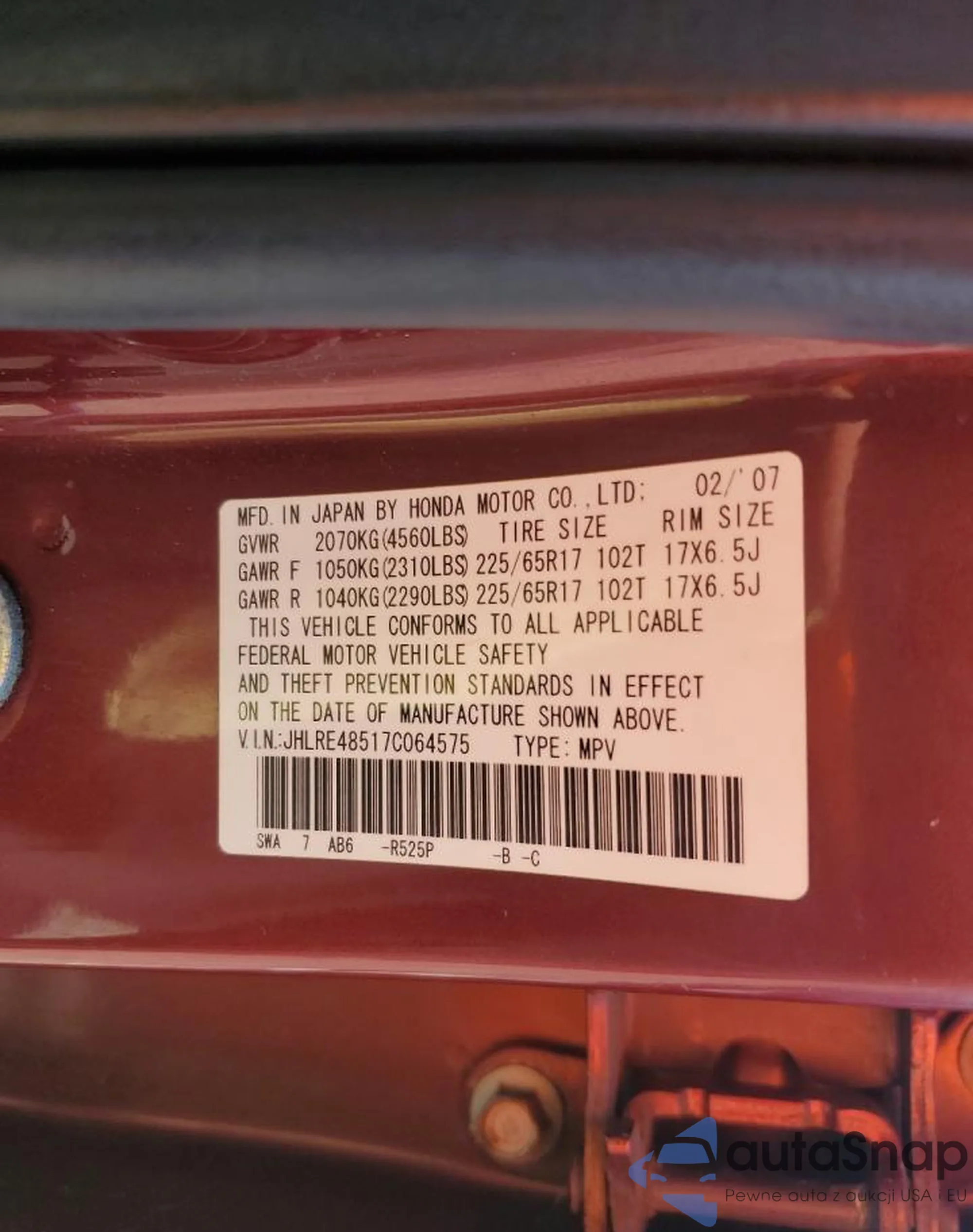 • VIN JHLRE48517C064575