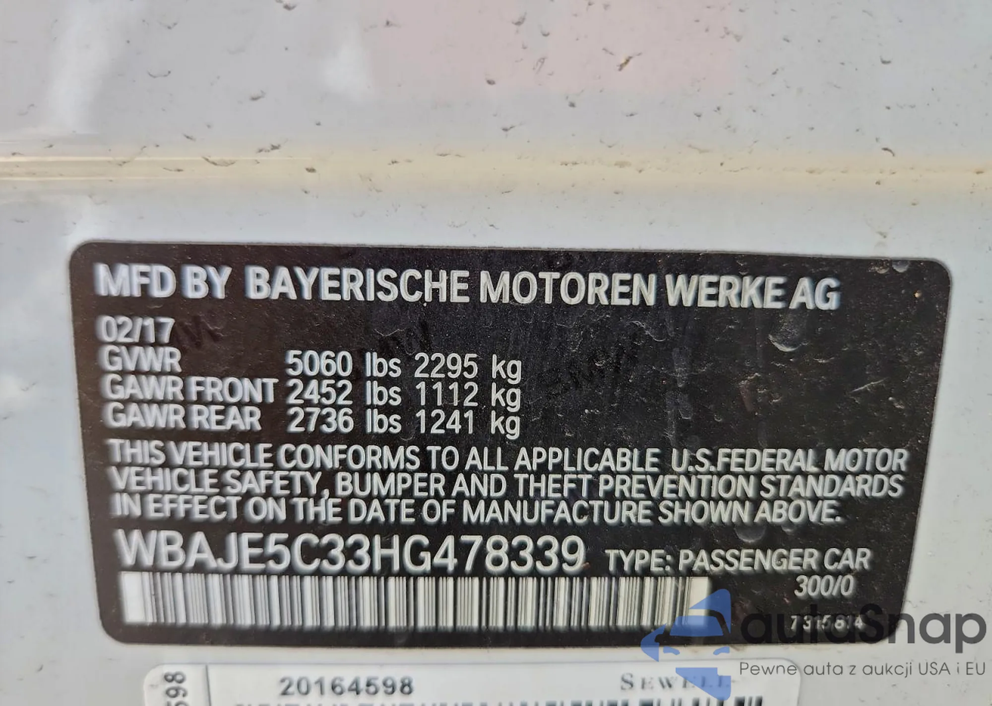 • VIN 5UXWX9C54E0D27205