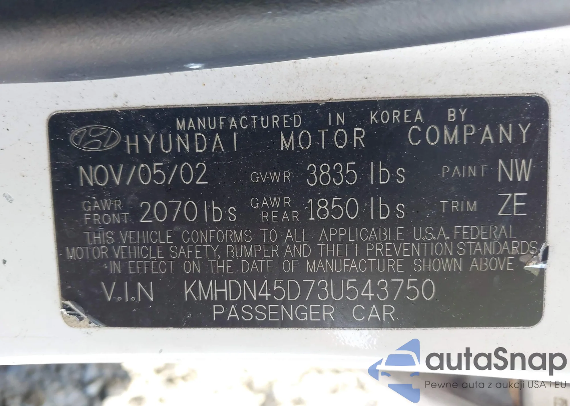 LOT: 43504403 VIN: KMHDN45D73U543750