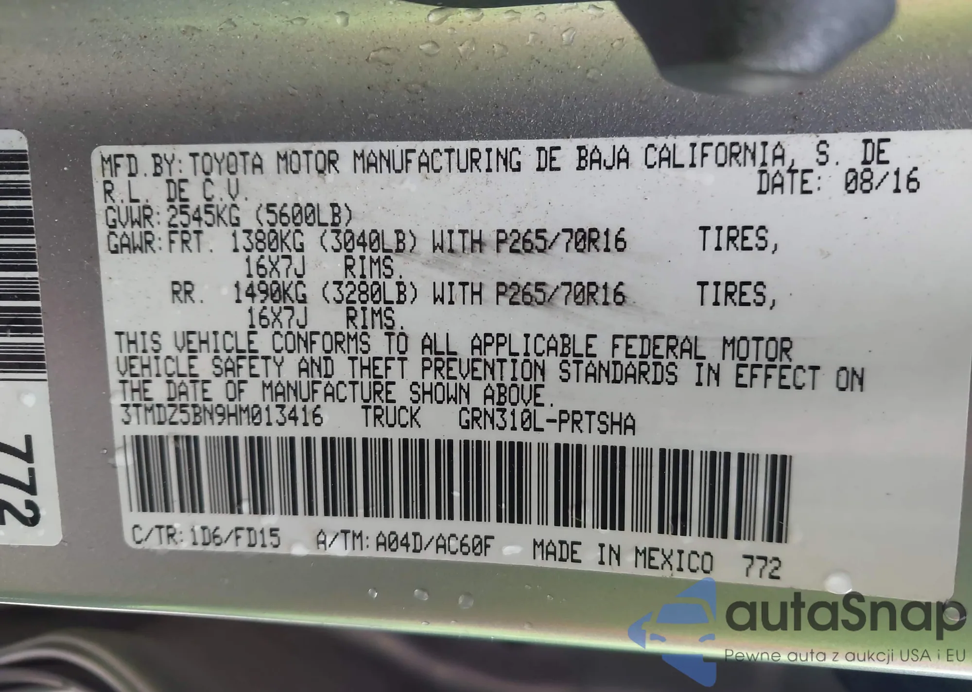 • VIN 3TMDZ5BN9HM013416