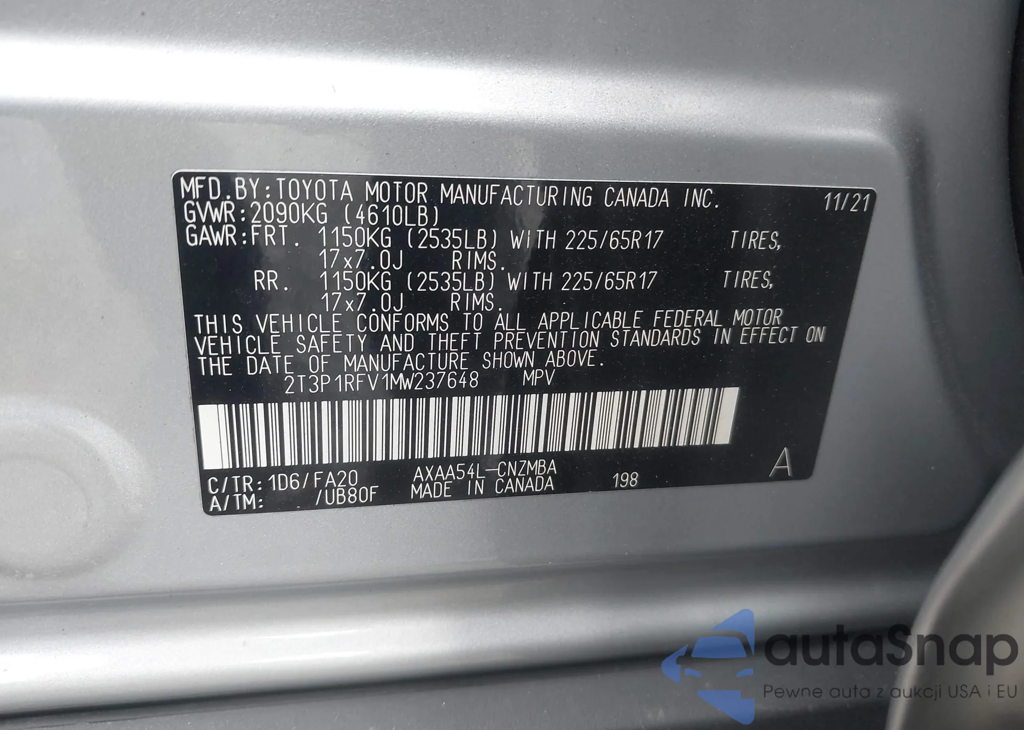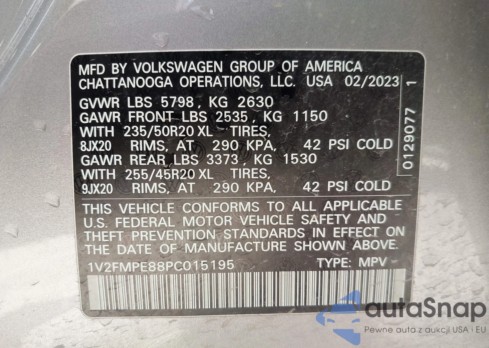 LOT: 43436628 VIN: JN8AF5MV5FT551865