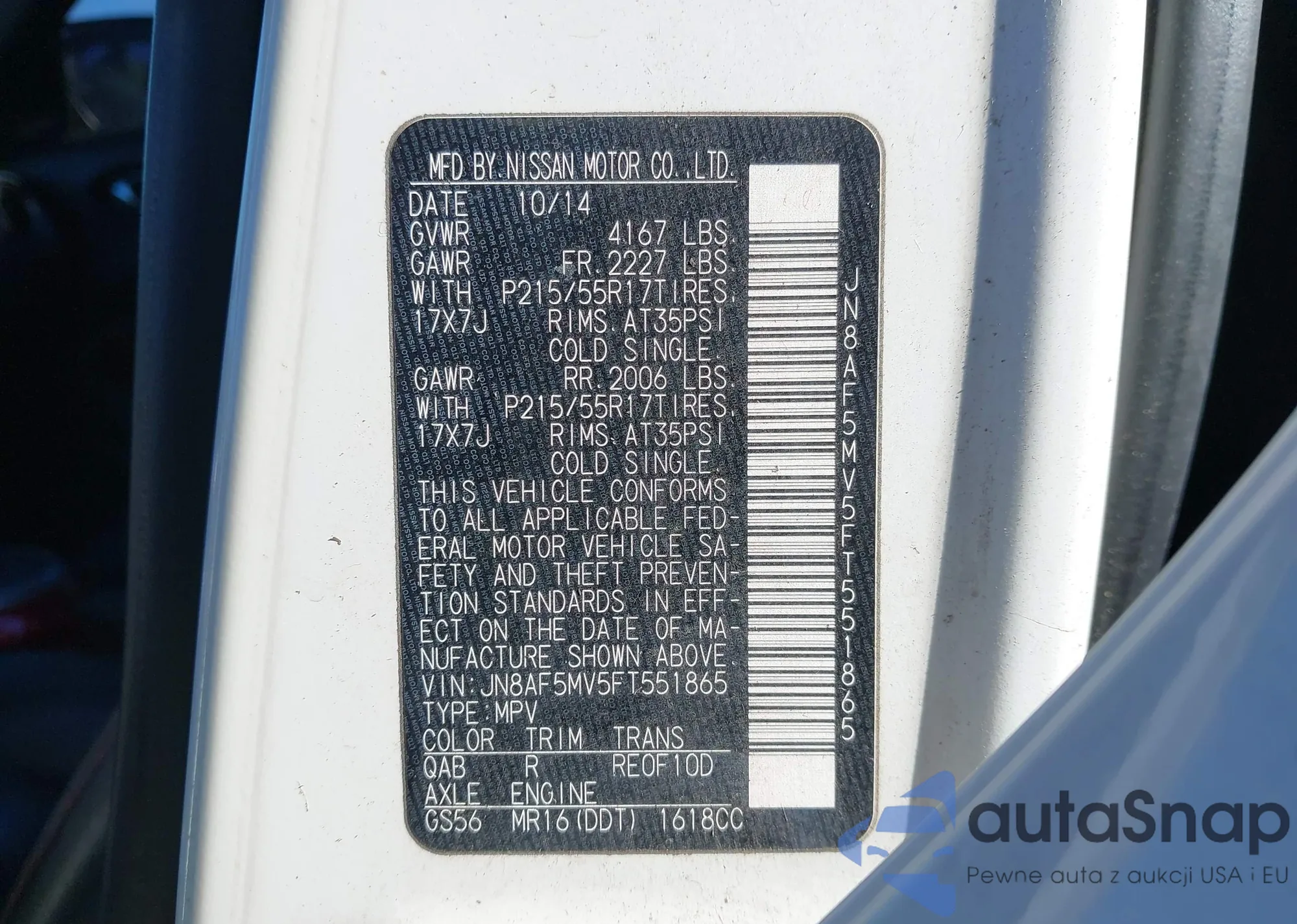 • VIN JN8AF5MV5FT551865