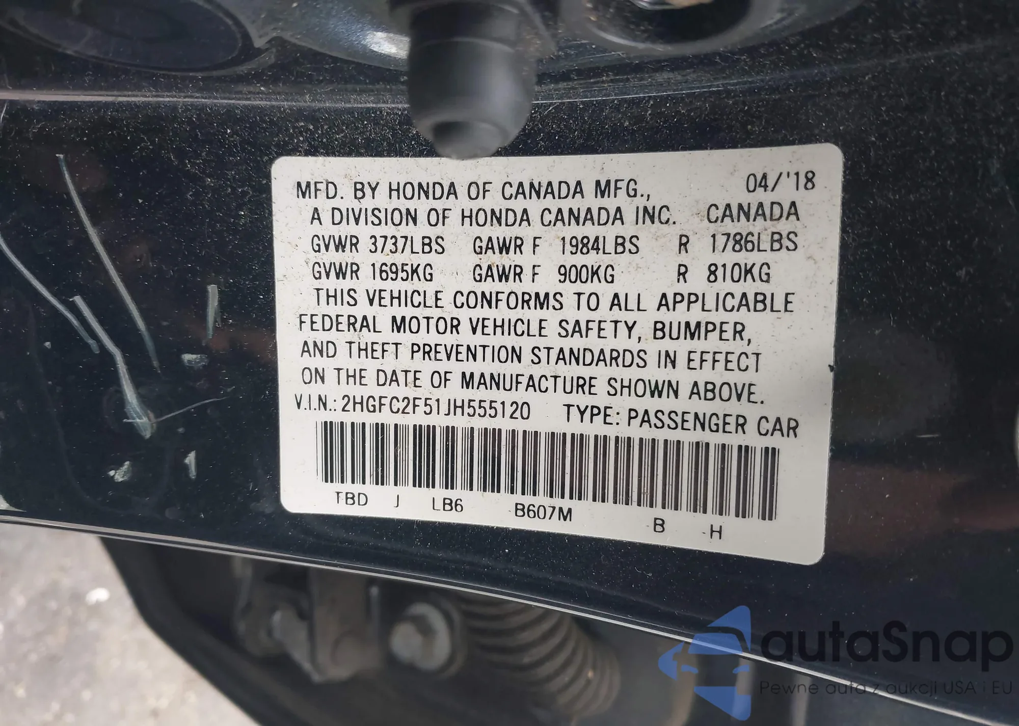 • VIN 2HGFC2F51JH555120
