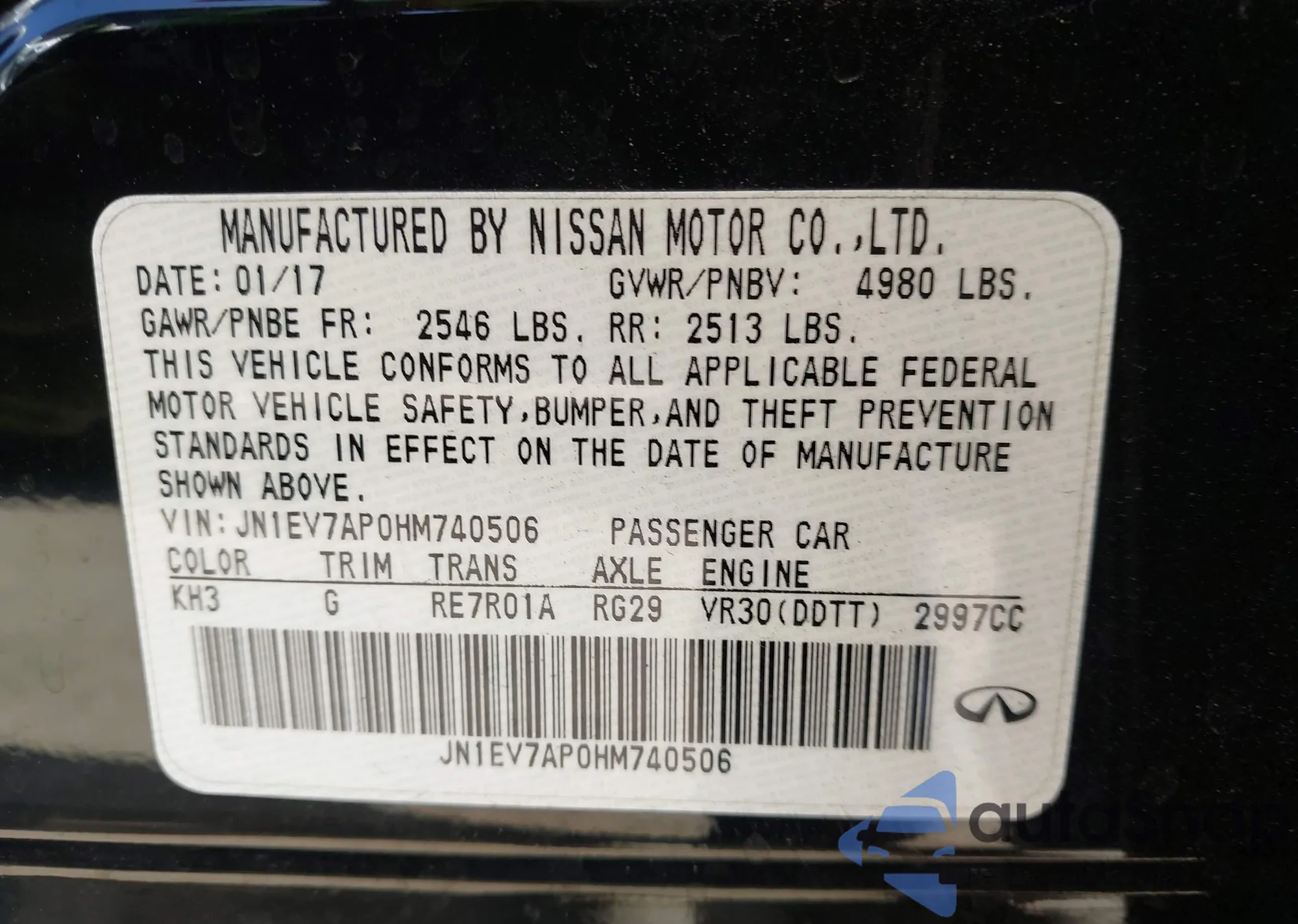 LOT: 43595694 VIN: JN1EV7AP0HM740506