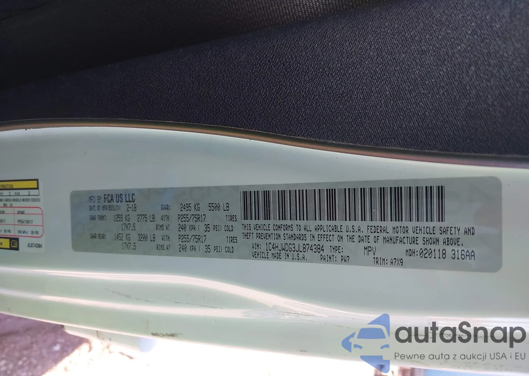 • VIN 1C4HJWDG3JL874384