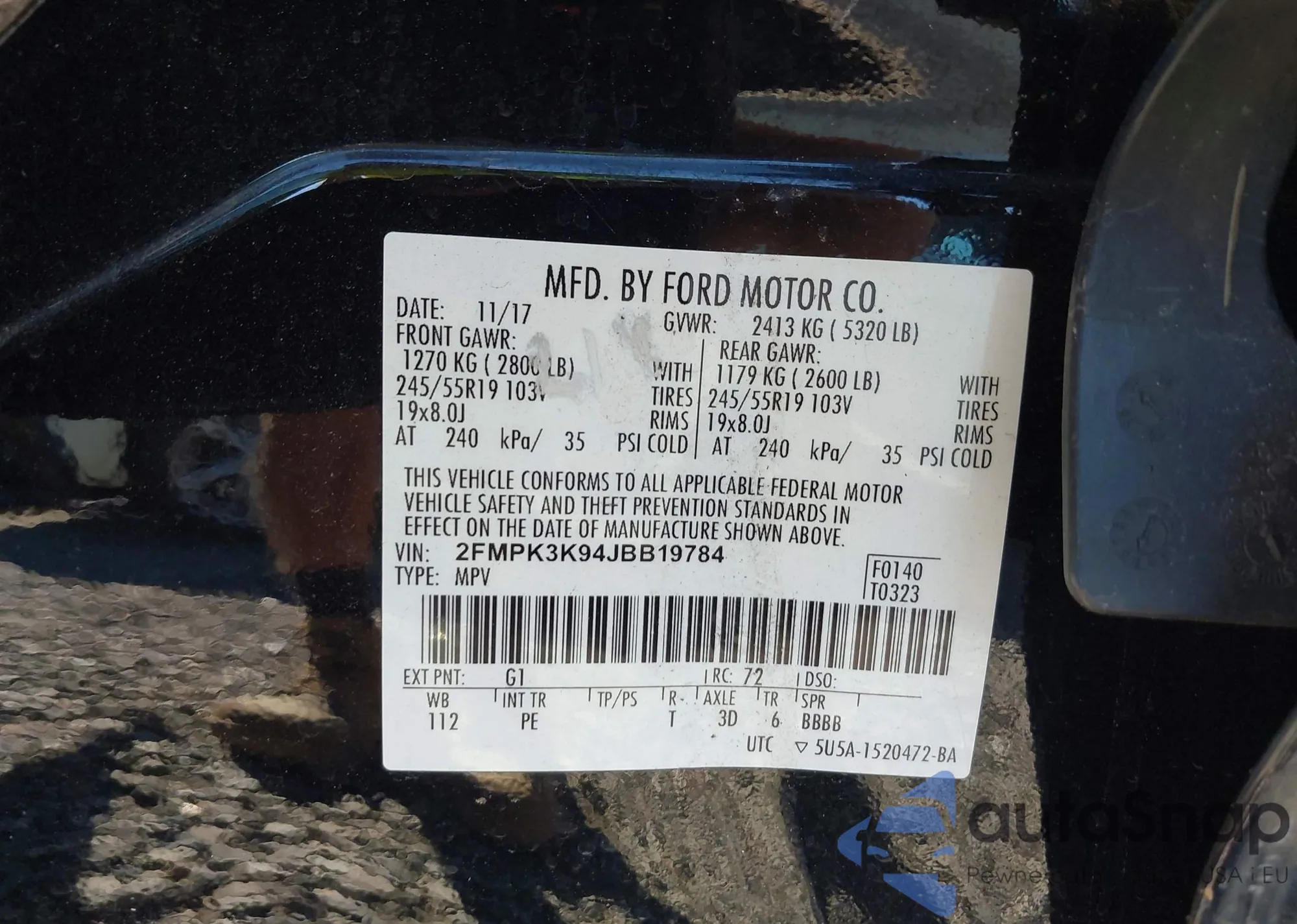 LOT: 43315560 VIN: WAUYELFF7K1032309