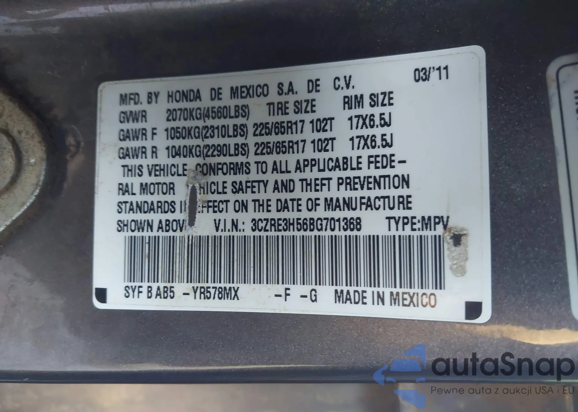 • VIN 3CZRE3H56BG701368