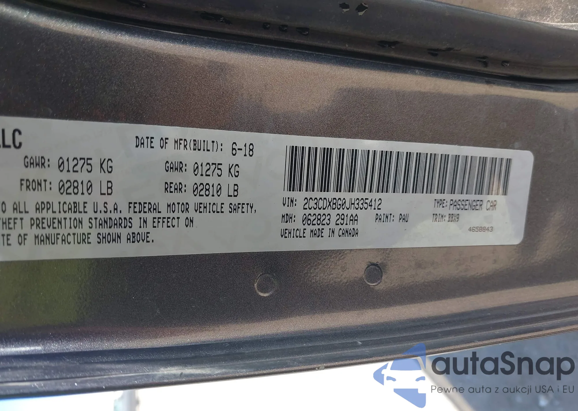 LOT: 43441578 VIN: WAUAUGFF4J1022122