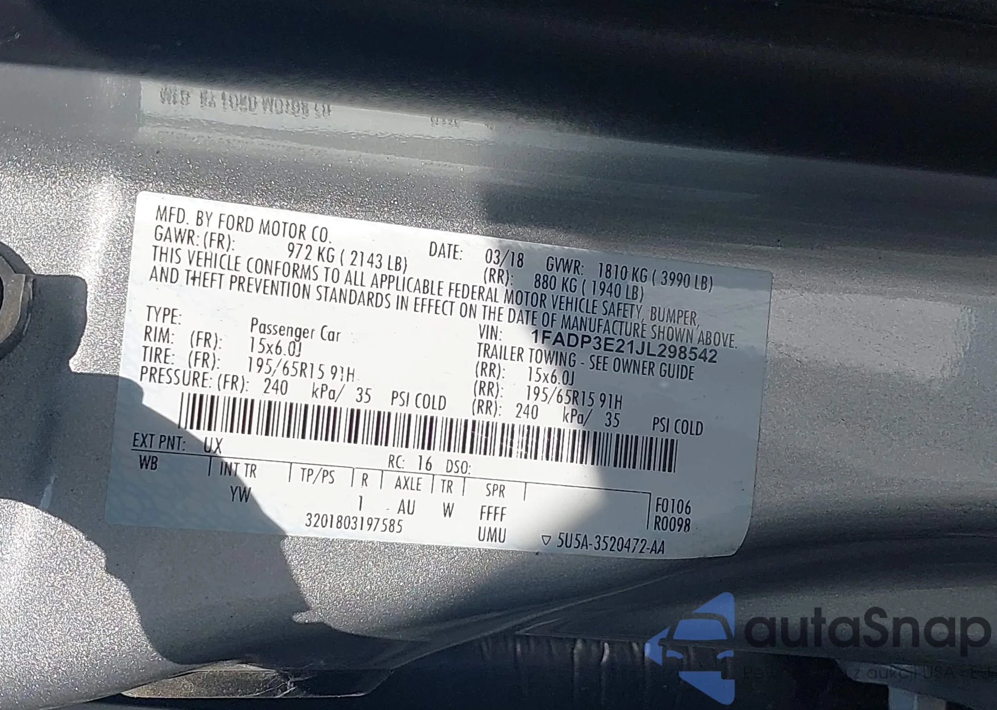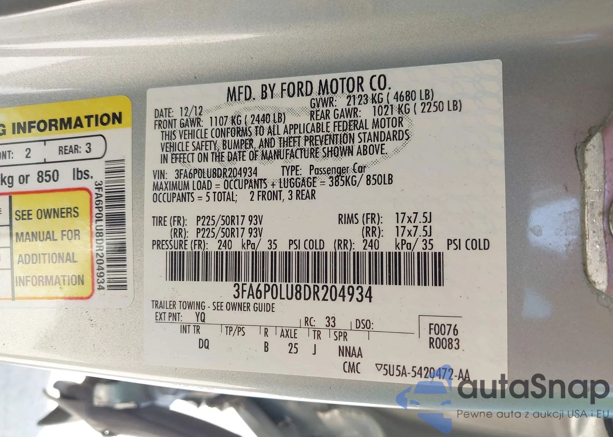• VIN 3FA6P0LU8DR204934