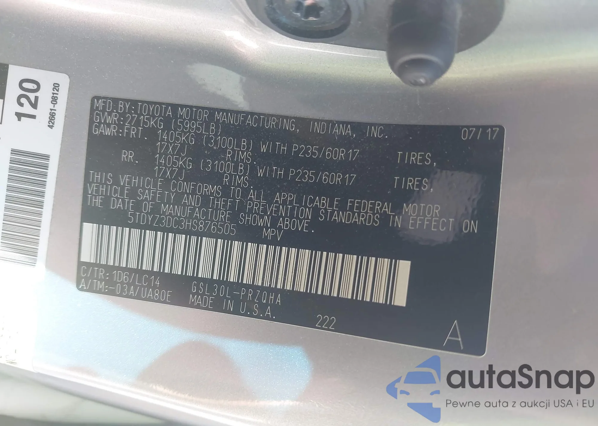 LOT: 43485546 VIN: 5UX73GP07S9020134