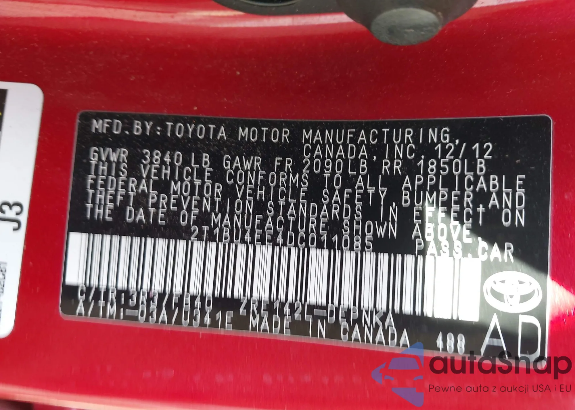 LOT: 43352522 VIN: 2T3F1RFV0MC198516