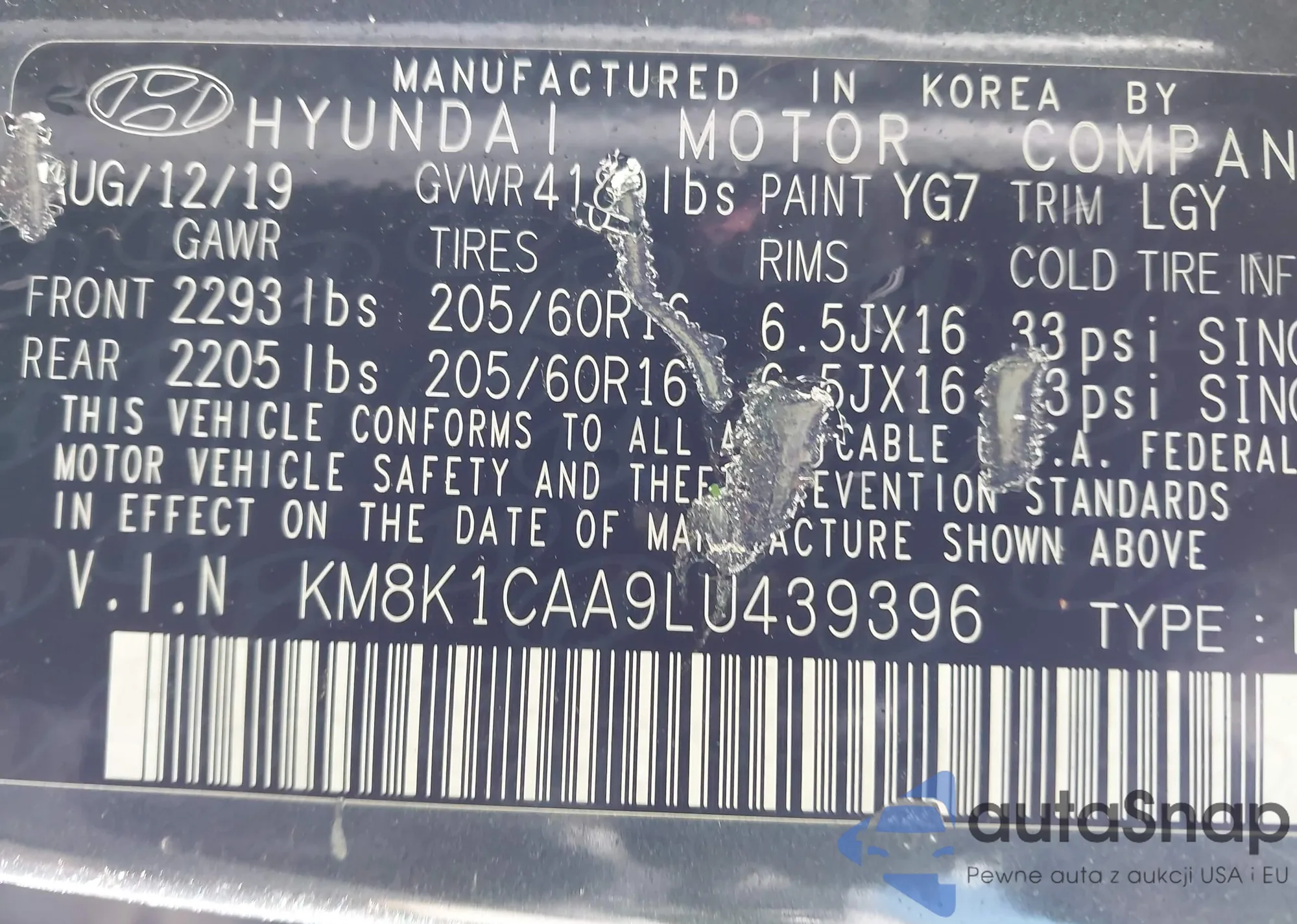 • VIN KM8K1CAA9LU439396