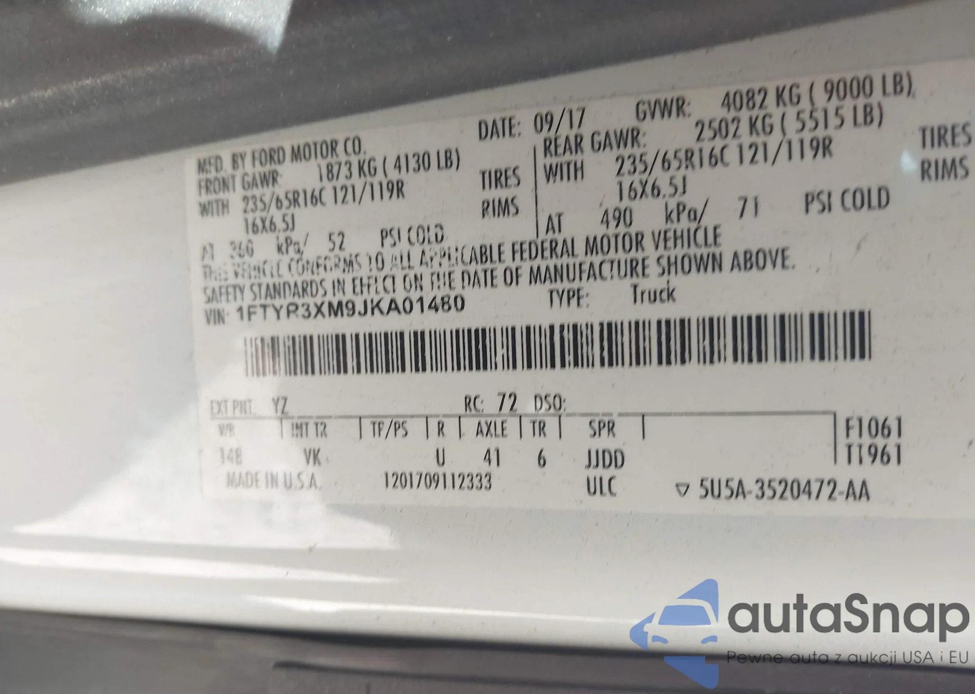 • VIN 1FTYR3XM9JKA01480