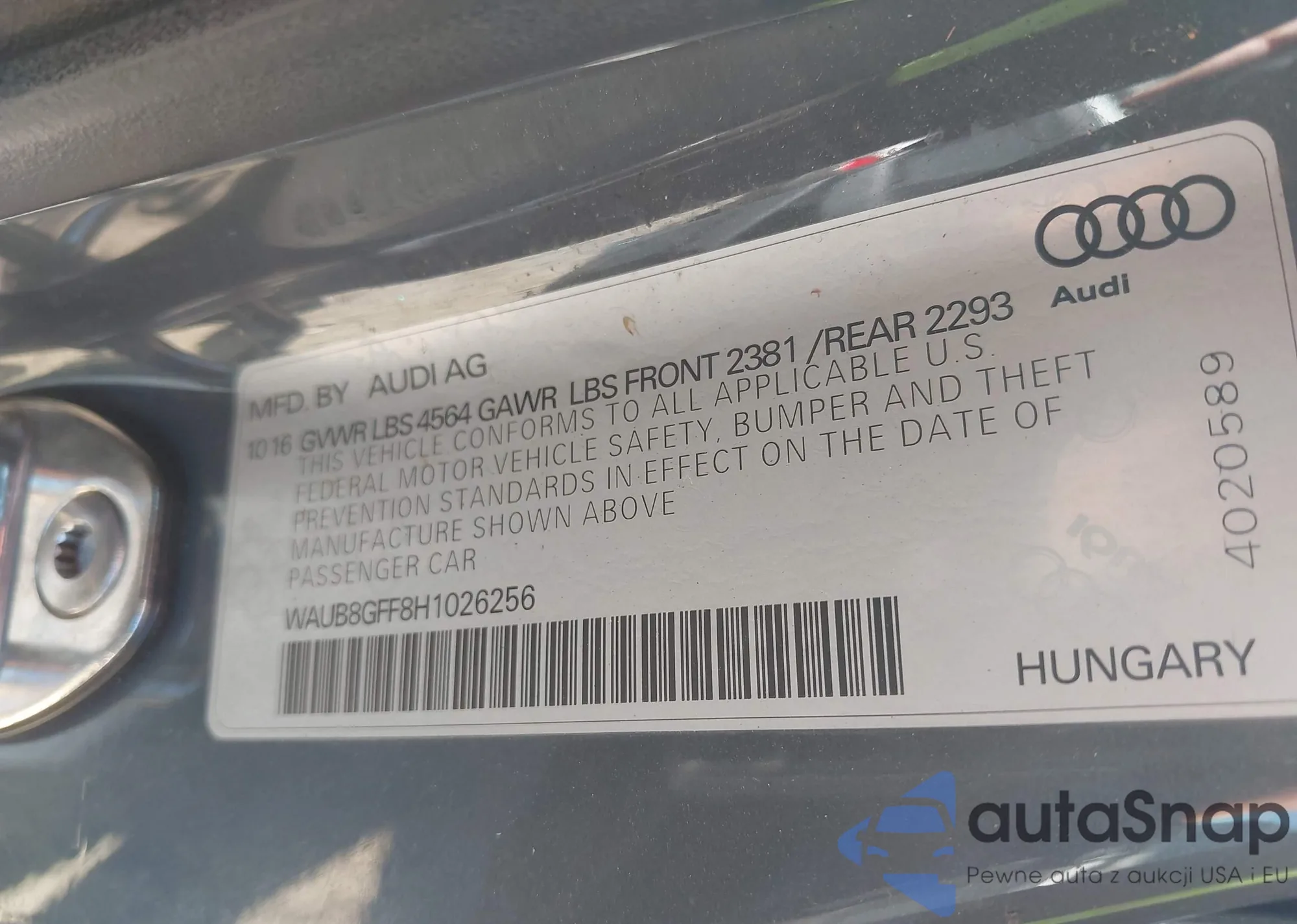 LOT: 43506194 VIN: WAUB8GFF8H1026256